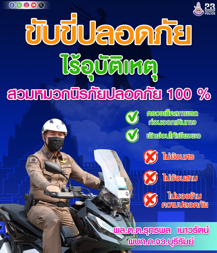 ขับขี่ปลอดภัย ไร้อุบัติเหตุ 11 เมษายน 2567 โดย admin / ข่าวประชาสัมพันธ์ ขับขี่ปลอดภัย ไร้อุบัติเหตุ สวมหมวกนิรภัยปลอดภัย 100%