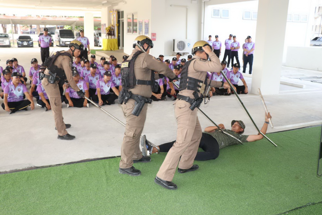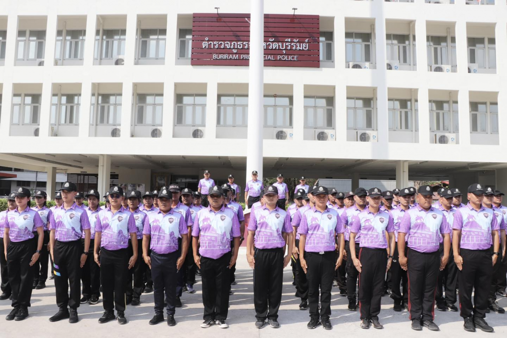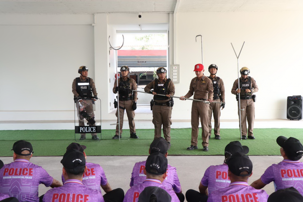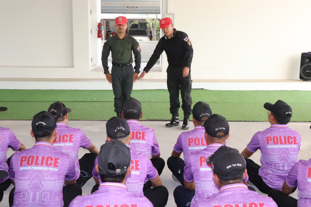 วันที่ 22 มีนาคม 2567 เวลา 15.00 น. พล.ต.ต.รุทธพล เนาวรัตน์ ผบก.ภ.จว.บุรีรัมย์ พร้อมด้วย พ.ต.อ.ปริญญา พรเดชาพิพัฒ รอง ผบก.ภ.จว.บุรีรัมย์,พ.ต.อ.อดุลย์ ชัยประสิทธิกุล รอง ผบก.ภ.จว.บุรีรัมย์,พ.ต.อ.ชูสิทธิ์ หล่อแสง รอง ผบก.ภ.จว.บุรีรัมย์ นำข้าราชการตำรวจในสังกัด ภ.จว.บุรีรัมย์ (ส่วนกลาง) ออกกำลังกายและฝึกประจำสัปดาห์ โดยมีการสาธิตการฝึกยุทธวิธีตำรวจ การใช้ไม้ง่ามระงับเหตุ การป้องกันตัวเอง และการจับกุม ให้แก่ข้าราชการตำรวจ ณ บริเวณด้านหน้าที่ทำการ ภ.จว.บุรีรัมย์ อ.เมือง จ.บุรีรัมย์