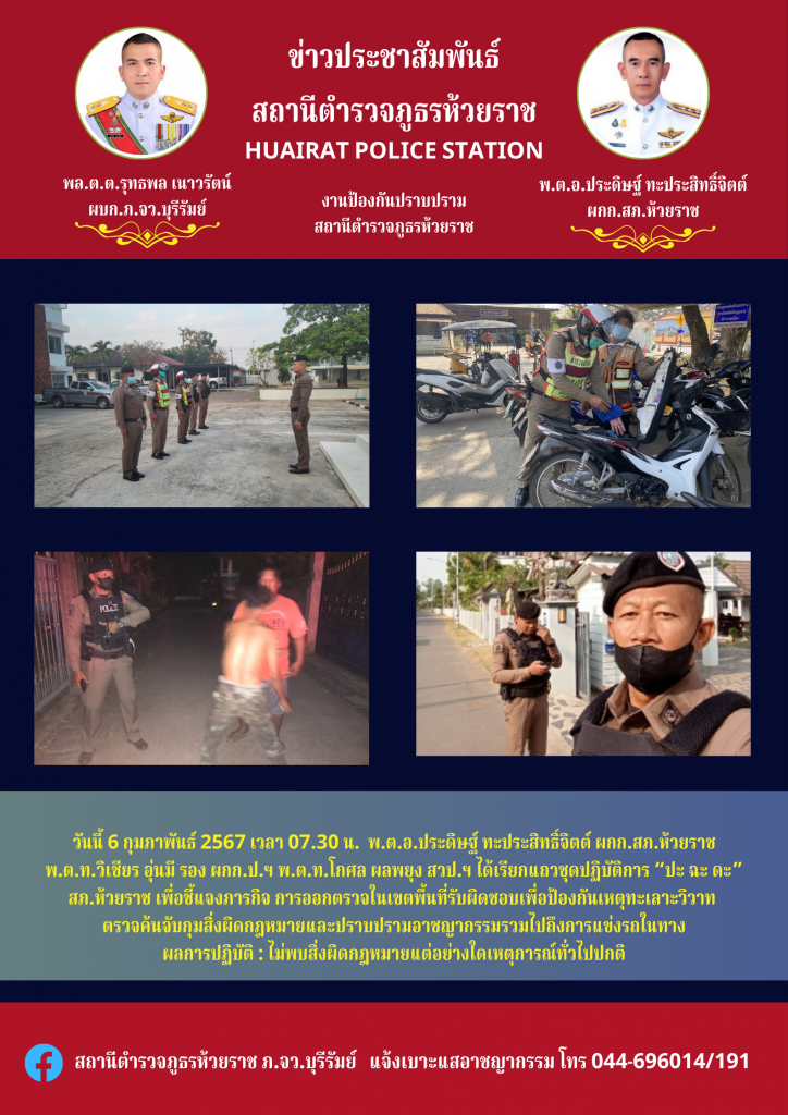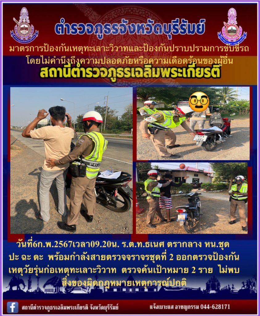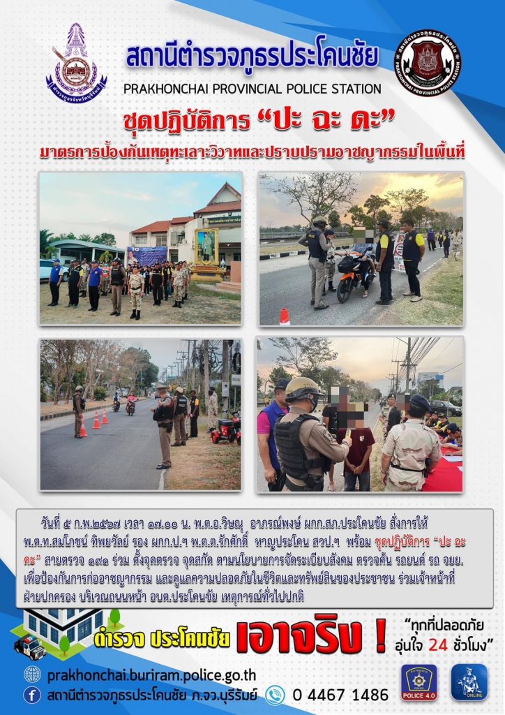 ชุดปฏิบัติการ ปะ ฉะ ดะ เข้มต่อเนื่องมาตรการป้องกันปราบปรามในพื้นที่จังหวัดบุรีรัมย์