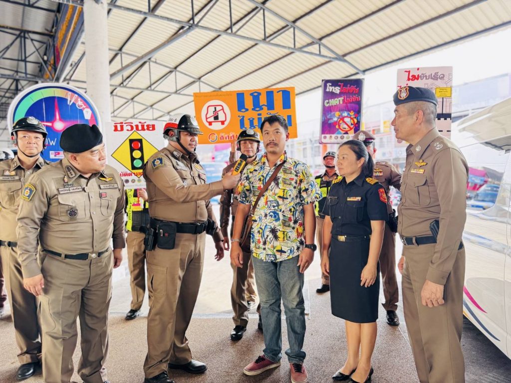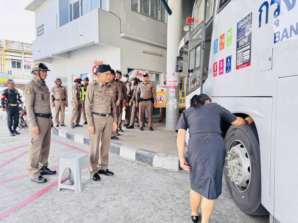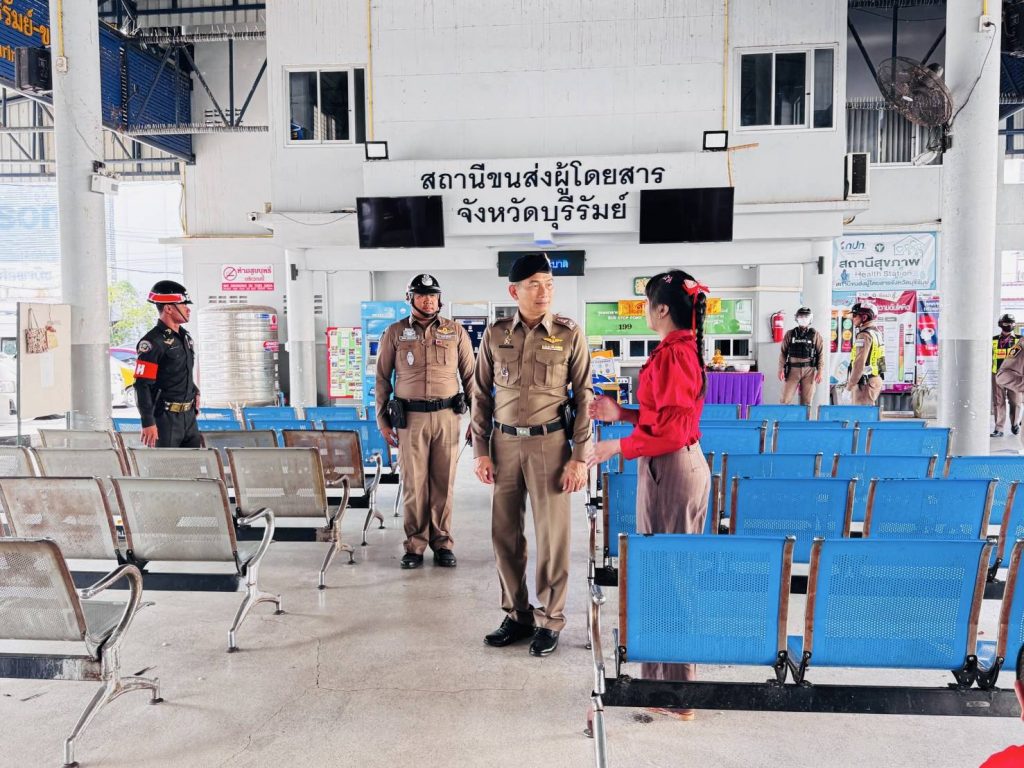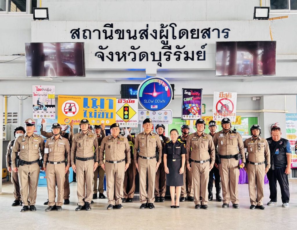วันที่ 15 เม.ย.68 เวลา 16.00 น. พล.ต.ต.ณรงค์ศักดิ์ พรหมทา ผบก.ภ.จว.บุรีรัมย์ พร้อมด้วย พ.ต.อ.เจตน์สฤษฎิ์ แพ่งศรีสาร รอง ผบก.ภ.จว.บุรีรัมย์ ได้เดินทางมาที่สถานีขนส่งผู้โดยสารจังหวัดบุรีรัมย์ (บขส.)เพื่อตรวจสอบความพร้อมของผู้ขับรถขนส่งสาธารณะ และความพร้อมของรถยนต์ที่ใช้ในการเดินทาง เพื่อความปลอดภัยในการเดินทางของประชาชนช่วงเทศกาลสงกรานต์ ได้กำชับให้ผู้ขับขี่ปฏิบัติตามกฎจราจรและคำนึงถึงความปลอดภัยอย่างเคร่งครัด โดยมี พ.ต.อ.จำรัส ศิริเลี้ยง ผกก.สภ.เมืองบุรีรัมย์, สำนักงานขนส่งจังหวัดบุรีรัมย์ และฝ่ายทหาร และผู้เกี่ยวข้องนำตรวจ