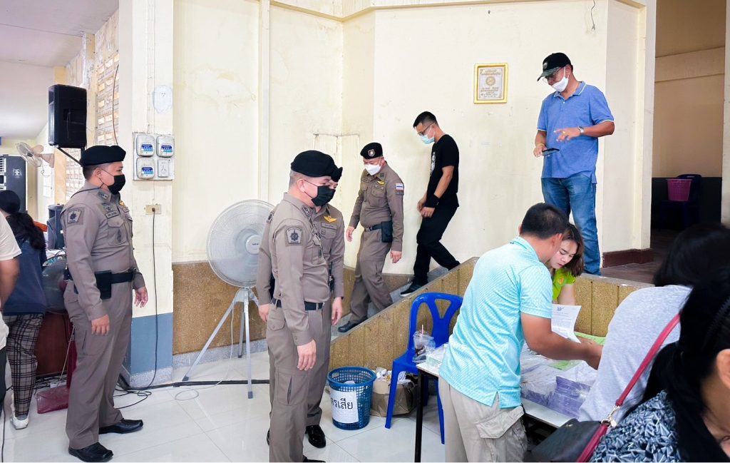 วันที่ 13 พฤษภาคม 2566 พล.ต.ต.รุทธพล เนาวรัตน์ ผบก.ภ.จว.บุรีรัมย์ พร้อมด้วย พ.ต.อ.ศิริวัฒน์ สมกิจศิริ ผกก.สภ.เมืองบุรีรัมย์, พ.ต.ท.ธนานนท์ ไชยสิน รอง ผกก.ป.สภ.เมืองบุรีรัมย์, พ.ต.ท.อานนท์ เหล็กดี รอง.ผกก.จร สภ.เมืองบุรีรัมย์ ร่วมตรวจเยี่ยมการส่งมอบหีบบัตรเลือกตั้งและวัสดุอุปกรณ์ เขตเลือกตั้งที่ 1 ณ หอประชุมอำเภอเมืองบุรีรัมย์ อ.เมืองจ.บุรีรัมย์