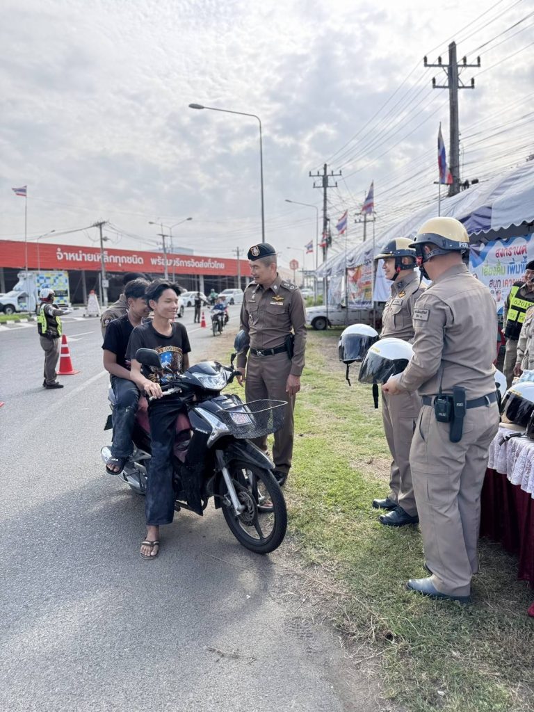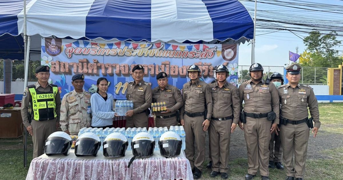 วันที่ 15 เม.ย.68 เวลา 15.00 น. พล.ต.ต.ณรงค์ศักดิ์ พรหมทา ผบก.ภ.จว.บุรีรัมย์ พร้อมด้วย พ.ต.อ.เจตน์สฤษฎิ์ แพ่งศรีสาร รอง ผบก.ภ.จว.บุรีรัมย์ ได้เดินทางมาตรวจเยี่ยมจุดบริการประชาชน บริเวณสี่แยกกระสัง ตั้งอยู่บนทางหลวงหมายเลข 219 พบ พ.ต.อ.จำรัส ศิริเลี้ยง ผกก.สภ.เมืองบุรีรัมย์ พร้อมด้วยข้าราชการตำรวจในสังกัด, ฝ่ายปกครอง, สาธารณสุข และอาสาสมัคร อยู่ปฏิบัติงานต่อไป