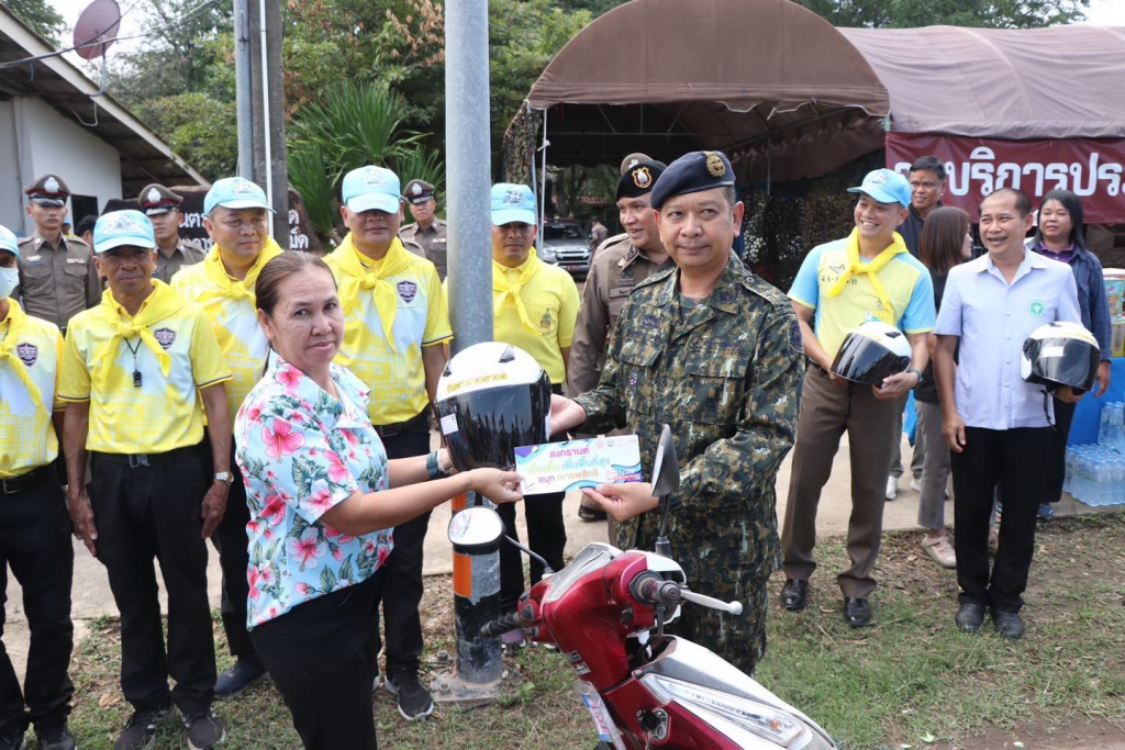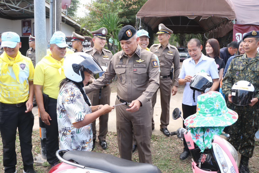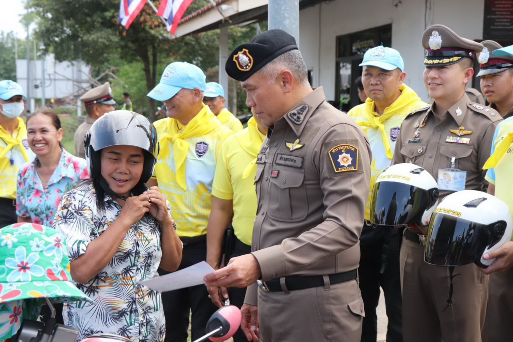 ทั้งนี้ได้ร่วมกับหน่วยงานที่เกี่ยวข้อง มอบหมวกนิรภัยตามโครงการจิตอาสาพระราชทานเพื่อรณรงค์ตามโครงการการขับขี่ปลอดภัยในช่วงเทศกาลสงกรานต์ ประจำปี พ.ศ.2568 ให้กับประชาชนผู้ใช้เส้นทางสัญจร