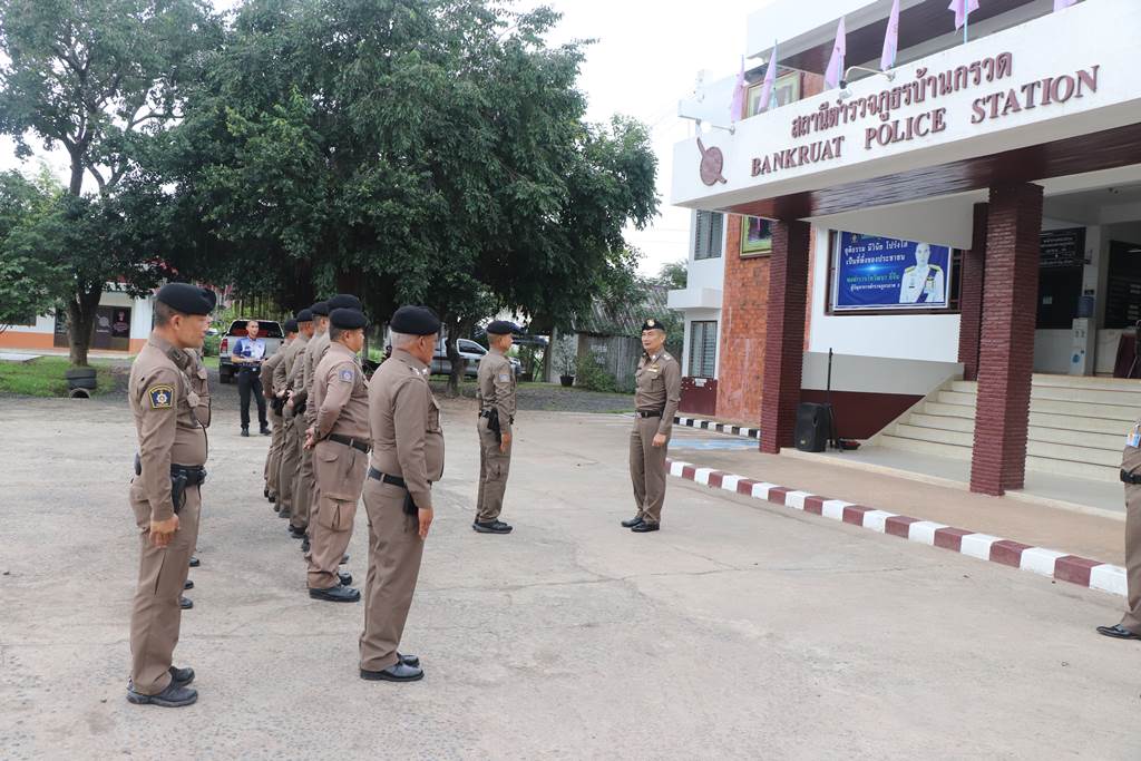 มาตรวจเยี่ยม สภ.บ้านกรวด โดยมี พ.ต.อ.ธวัชชัย สร้อยสวัสดิ์ ผกก.สภ.บ้านกรวด และข้าราชการตำรวจในสังกัดอยู่ปฏิบัติหน้าที่ ได้ประชุมชี้แจงมอบหมายกำชับข้อราชการดังต่อไปนี้