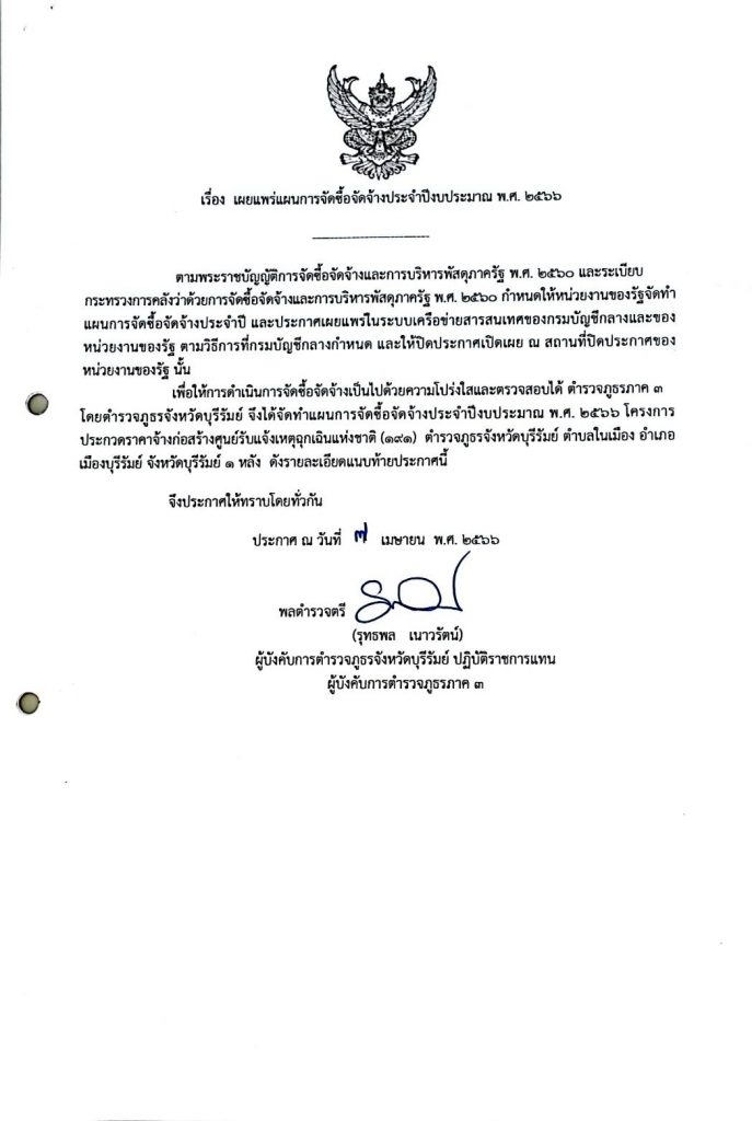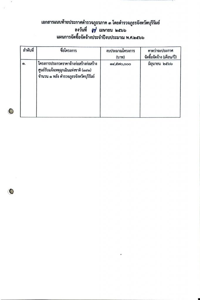 ประกาศแผนโครงการจ้างก่อสร้างศูนย์รับแจ้งเหตุฉุกเฉินแห่งช่าติ (191)