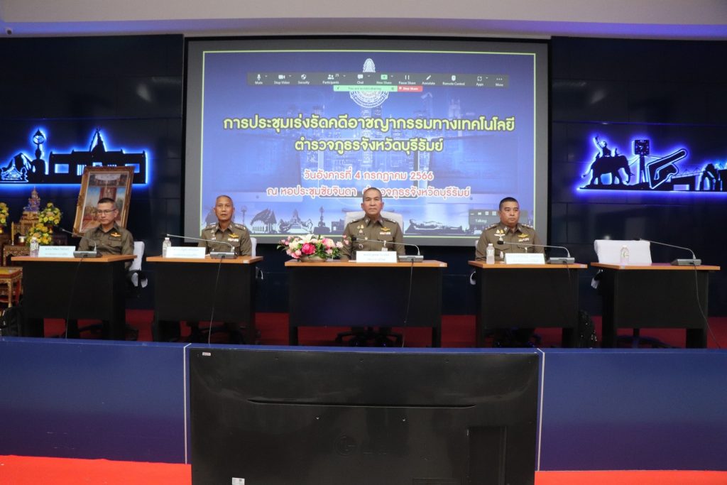 วันที่ 4 กรกฎาคม 2566 เวลา 13.30 น. พล.ต.ต.รุทธพล เนาวรัตน์ ผบก.ภ.จว.บุรีรัมย์ เป็นประธาน พร้อมด้วย พ.ต.อ.เจตน์สฤษฎิ์ แพ่งศรีสาร รอง ผบก.ภ.จว.บุรีรัมย์, ผกก.(สอบสวน)กลุ่มงานสอบสวนฯ, หัวหน้าสถานีตำรวจภูธรในสังกัด และละเจ้าหน้าที่ที่เกี่ยวข้อง