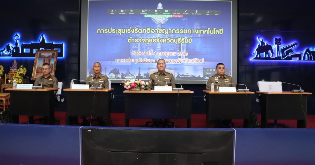 วันที่ 4 กรกฎาคม 2566 เวลา 13.30 น. พล.ต.ต.รุทธพล เนาวรัตน์ ผบก.ภ.จว.บุรีรัมย์ เป็นประธาน พร้อมด้วย พ.ต.อ.เจตน์สฤษฎิ์ แพ่งศรีสาร รอง ผบก.ภ.จว.บุรีรัมย์, ผกก.(สอบสวน)กลุ่มงานสอบสวนฯ, หัวหน้าสถานีตำรวจภูธรในสังกัด และละเจ้าหน้าที่ที่เกี่ยวข้อง