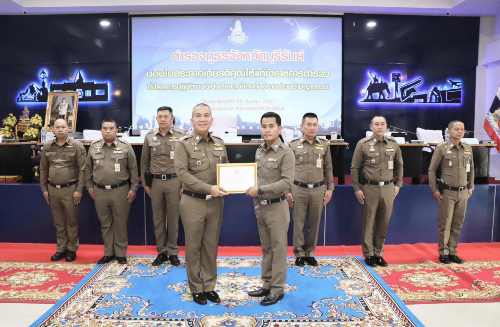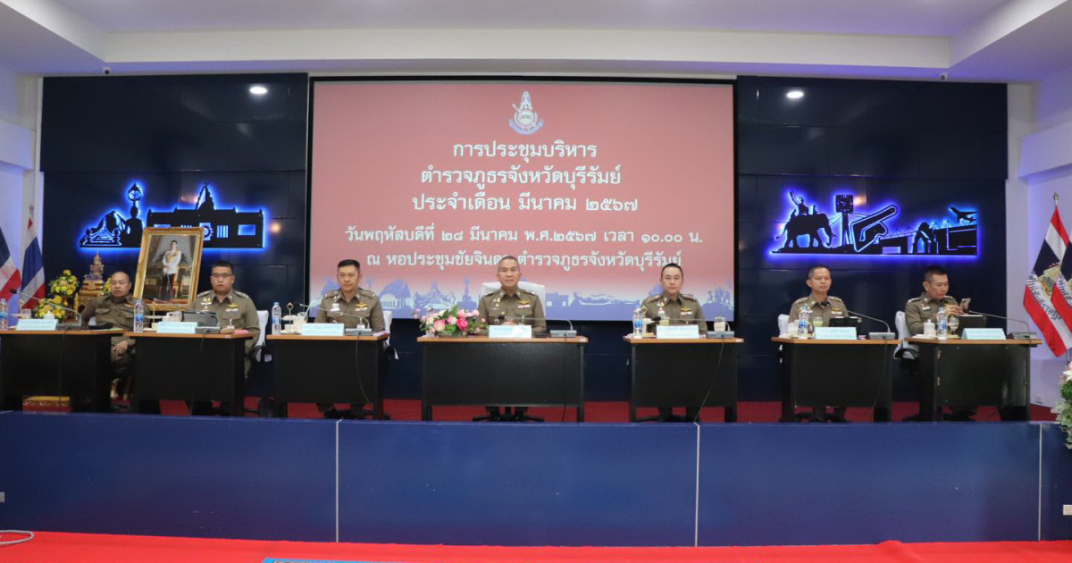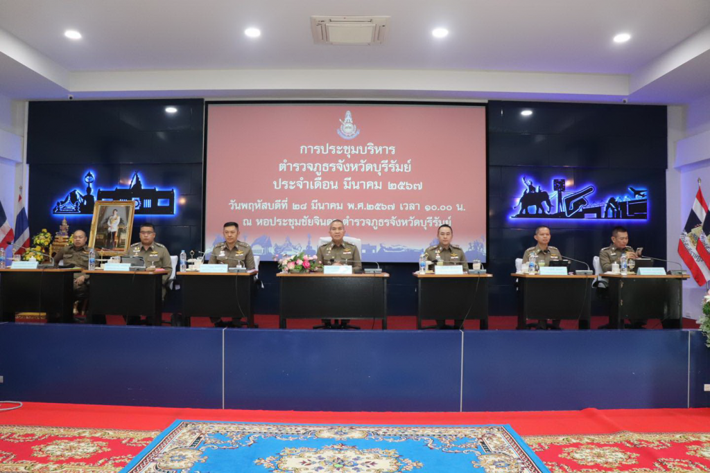ร่วมประชุมบริหาร ภ.จว.บุรีรัมย์ ประจำเดือน มีนาคม 2567 พร้อมได้มอบเงินช่วยเหลือข้าราชการตำรวจที่ได้รับบาดเจ็บจากการปฏิบัติหน้าที่, มอบใบประกาศเกียรติคุณให้แก่พลเมืองดีช่วยเหลือราชการงานตำรวจ และข้าราชการตำรวจช่วยเหลือประชาชนและข้าราชการตำรวจที่มีผลการปฏิบัติงานดีเด่นด้านการป้องกันปราบปรามอาชญากรรม ณ หอประชุมชัยจินดา ภ.จว.บุรีรัมย์ อ.เมือง จ.บุรีรัมย์