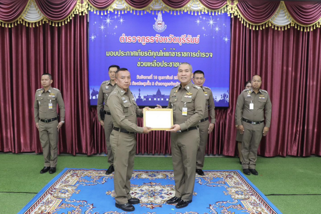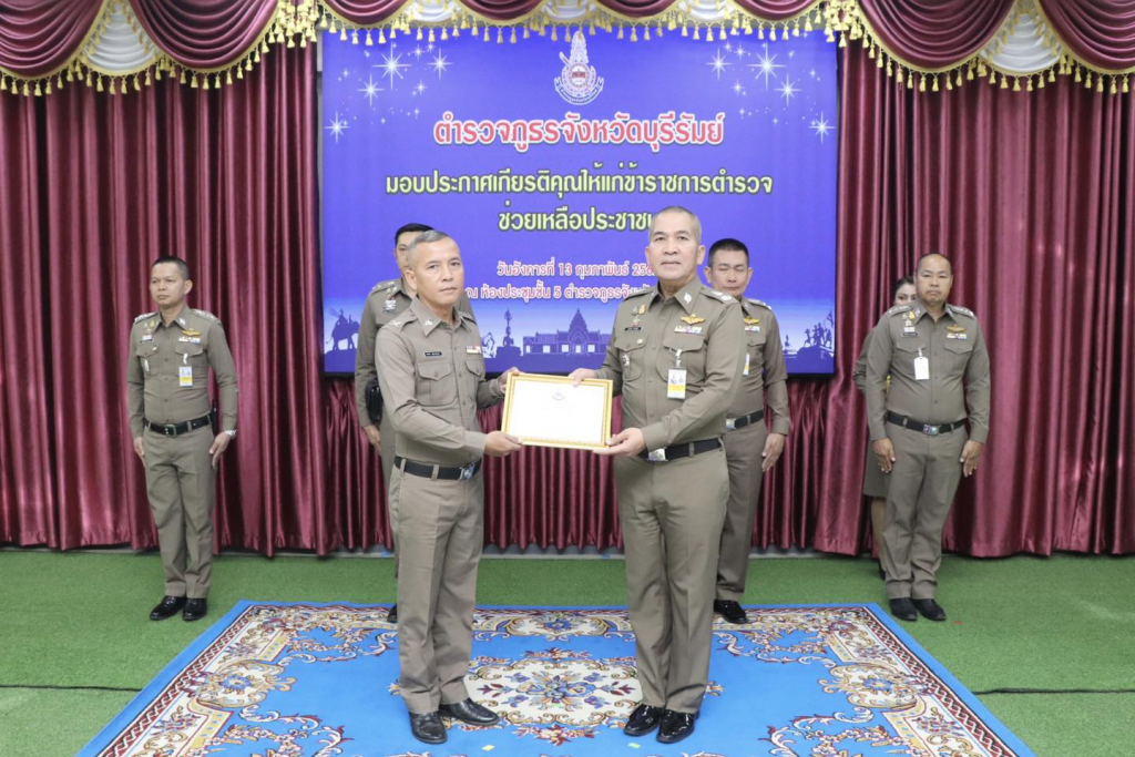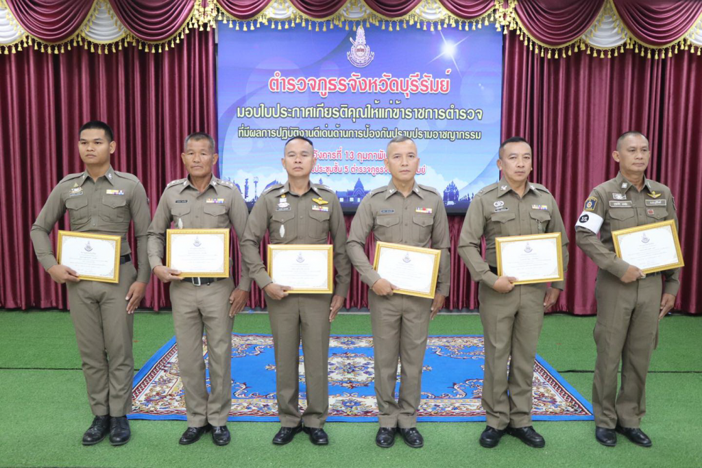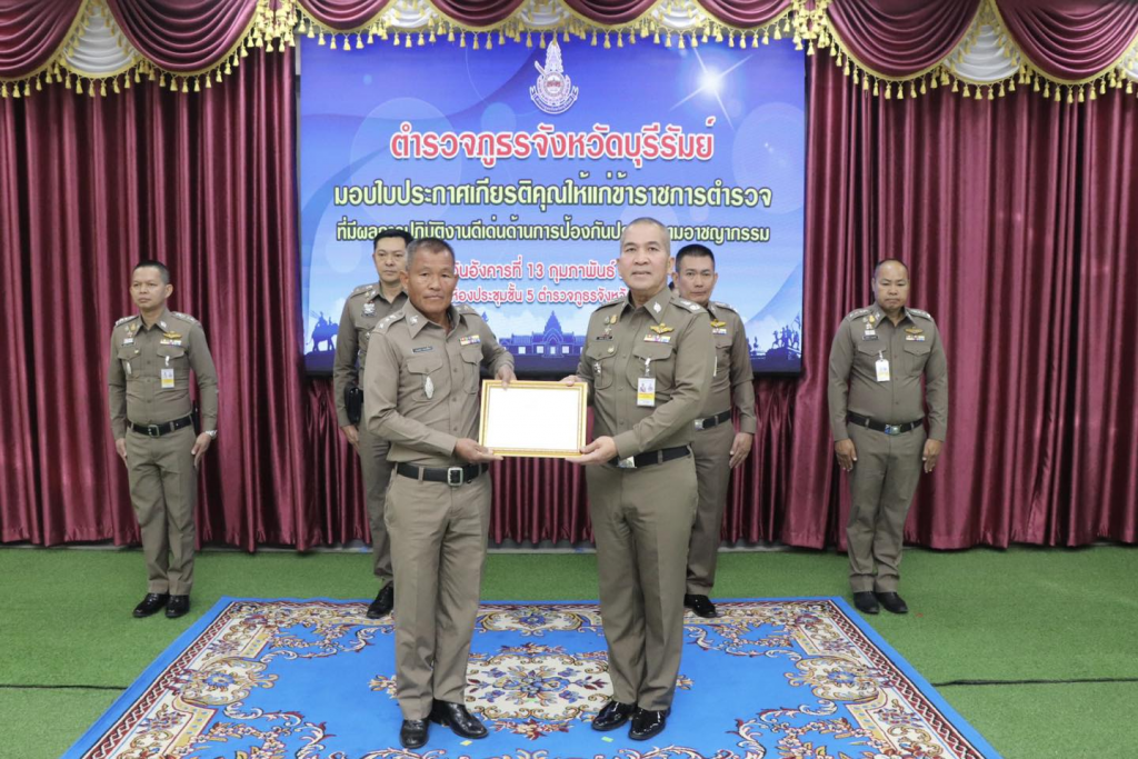 วันที่ 13 กุมภาพันธ์ 2567 เวลา 09.30 น. พล.ต.ต.รุทธพล เนาวรัตน์ ผบก.ภ.จว.บุรีรัมย์ เป็นประธาน พร้อมด้วย พ.ต.อ.ปริญญา พรเดชาพิพัฒ รอง ผบก.ภ.จว.บุรีรัมย์, พ.ต.อ.ก้องชาติ เลี้ยงสมทรัพย์ รอง ผบก.ภ.จว.บุรีรัมย์, พ.ต.อ.อดุลย์ ชัยประสิทธิกุล รอง ผบก.ภ.จว.บุรีรัมย์, พ.ต.อ.พงษ์พันธ์ พลวงษ์ศรี รอง ผบก.ภ.จว.บุรีรัมย์, พ.ต.อ.ชูสิทธิ์ หล่อแสง รอง ผบก.ภ.จว.บุรีรัมย์ และหน.สภ.ในสังกัด ภ.จว.บุรีรัมย์
