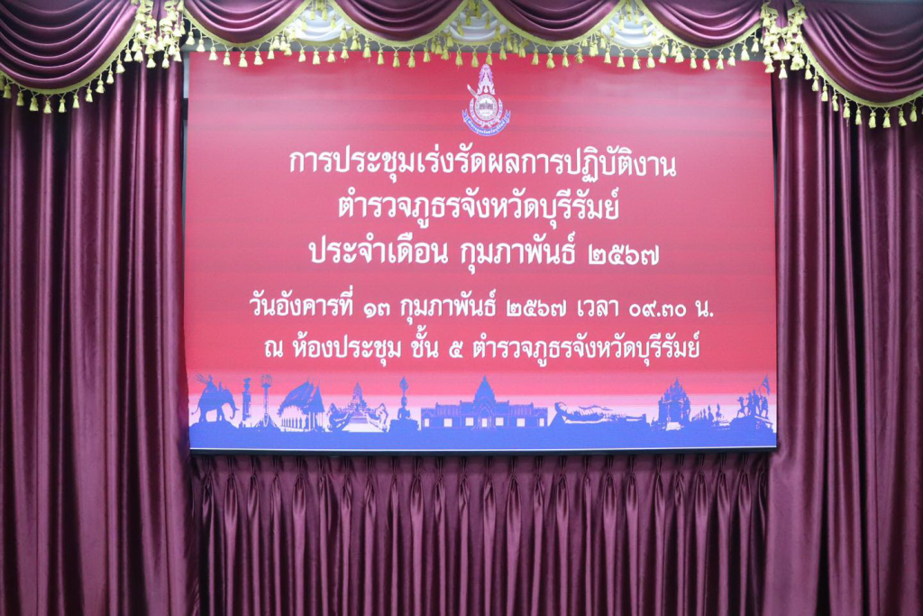 ร่วมประชุมเร่งรัดการปฏิบัติ ตำรวจภูธรจังหวัดบุรีรัมย์ ประจำเดือน กุมภาพันธ์ 2567 และประชุมเตรียมความพร้อมในการรับเสด็จสมเด็จพระเจ้าลูกเธอ เจ้าฟ้าสิริวัณณวรี นารีรัตนราชกัญญา เสด็จมาปฏิบัติพระกรณียกิจในพื้นที่จังหวัดบุรีรัมย์ (เป็นการส่วนพระองค์) ในวันที่ 18 มีนาคม 2567 ณ ห้องประชุมชั้น 5 ภ.จว.บุรีรัมย์ อ.เมือง จ.บุรีรัมย์