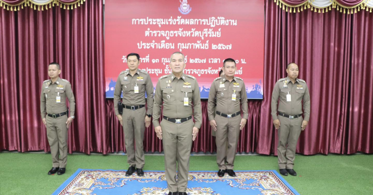 วันที่ 13 กุมภาพันธ์ 2567 เวลา 09.30 น. พล.ต.ต.รุทธพล เนาวรัตน์ ผบก.ภ.จว.บุรีรัมย์ เป็นประธาน พร้อมด้วย พ.ต.อ.ปริญญา พรเดชาพิพัฒ รอง ผบก.ภ.จว.บุรีรัมย์, พ.ต.อ.ก้องชาติ เลี้ยงสมทรัพย์ รอง ผบก.ภ.จว.บุรีรัมย์, พ.ต.อ.อดุลย์ ชัยประสิทธิกุล รอง ผบก.ภ.จว.บุรีรัมย์, พ.ต.อ.พงษ์พันธ์ พลวงษ์ศรี รอง ผบก.ภ.จว.บุรีรัมย์, พ.ต.อ.ชูสิทธิ์ หล่อแสง รอง ผบก.ภ.จว.บุรีรัมย์ และหน.สภ.ในสังกัด ภ.จว.บุรีรัมย์