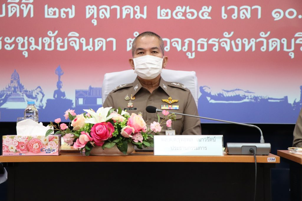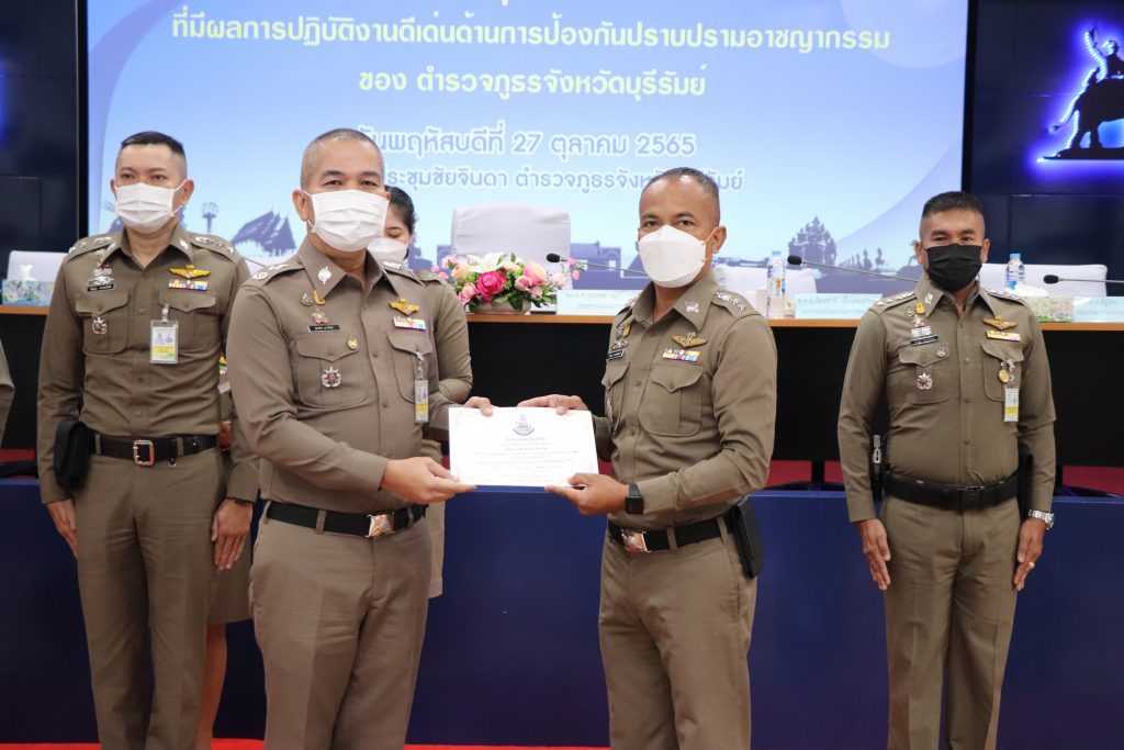 วันที่ 27 ต.ค.65 เวลา 10.00 น. พล.ต.ต.รุทธพล เนาวรัตน์ ผบก.ภ.จว.บุรีรัมย์ เป็นประธานการประชุมเร่งรัดผลการปฏิบัติงานตำรวจภูธรจังหวัดบุรีรัมย์ ประจำเดือน ตุลาคม 2565 พร้อมด้วย พ.ต.อ.วรายุส์ จันทร์เยี่ยม รอง ผบก.ฯ ปรก.ภ.จว.บุรีรัมย์,พ.ต.อ.ปริญญา พรเดชาพิพัฒ รอง ผบก.ภ.จว.บุรีรัมย์,พ.ต.อ.ก้องชาติ เลี้ยงสมทรัพย์ รอง ผบก.ภ.จว.บุรีรัมย์,พ.ต.อ.นิรันดร์ แก้วอิน รอง ผบก.ภ.จว.บุรีรัมย์,ผกก.ฝอ.ภ.จว.บุรีรัมย์, ผกก.สืบสวน กก.สืบสวน ภ.จว.บุรีรัมย์, ผกก.(สอบสวน) ภ.จว.บุรีรัมย์, หัวหน้า สภ. ในสังกัด, ข้าราชการตำรวจฝ่ายอำนวยการ ภ.จว.บุรีรัมย์ และผู้ที่มีส่วนเกี่ยวข้อง ร่วมประชุม ฯ พร้อมนี้ได้มอบทุนส่งเสริมการศึกษาให้แก่บุตรสมาชิกสหกรณ์ออมทรัพย์ตำรวจจังหวัดบุรีรัมย์ จำกัด จำนวน 14 คน มอบใบประกาศเกียรติคุณเพื่อยกย่องเชิดชูเกียรติเป็นขวัญและกำลังใจให้กับผู้ใต้บังคับบัญชา ที่มีผลการปฏิบัติงานดีเด่น ด้านการป้องกันปราบปรามอาชญากรรม ของ ตำรวจภูธรจังหวัดบุรีรัมย์ และข้าราชการตำรวจที่มีผลการปฏิบัติงานดีเด่น ด้านการป้องกันปราบปรามยาเสพติดดีเด่น ระดับ ภ.3 จำนวน 50 นาย ณ หอประชุมชัยจินดา ภ.จว.บุรีรัมย์