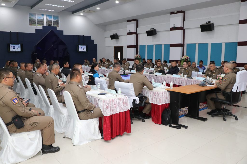 วันที่ 24 มกราคม 2568 เวลา 10.00 น. พ.ต.อ.ณรงค์ศักดิ์ พรหมทา รรท.ผบก.ภ.จว.บุรีรัมย์ พร้อมด้วย พ.ต.อ.ปริญญา พรเดชาพิพัฒ รอง ผบก.ภ.จว.บุรีรัมย์, พ.ต.อ.ก้องชาติ เลี้ยงสมทรัพย์ รอง ผบก.ภ.จว.บุรีรัมย์, พ.ต.อ.ชูสิทธิ์ หล่อแสง รอง ผบก.ภ.จว.บุรีรัมย์, หัวหน้าสถานีตำรวจที่เกี่ยวข้อง และ ศปก.สภ.ในพื้นที่ ภ.จว.บุรีรัมย์ เข้าร่วมฟังการประชุมทางไกลผ่านจอภาพ