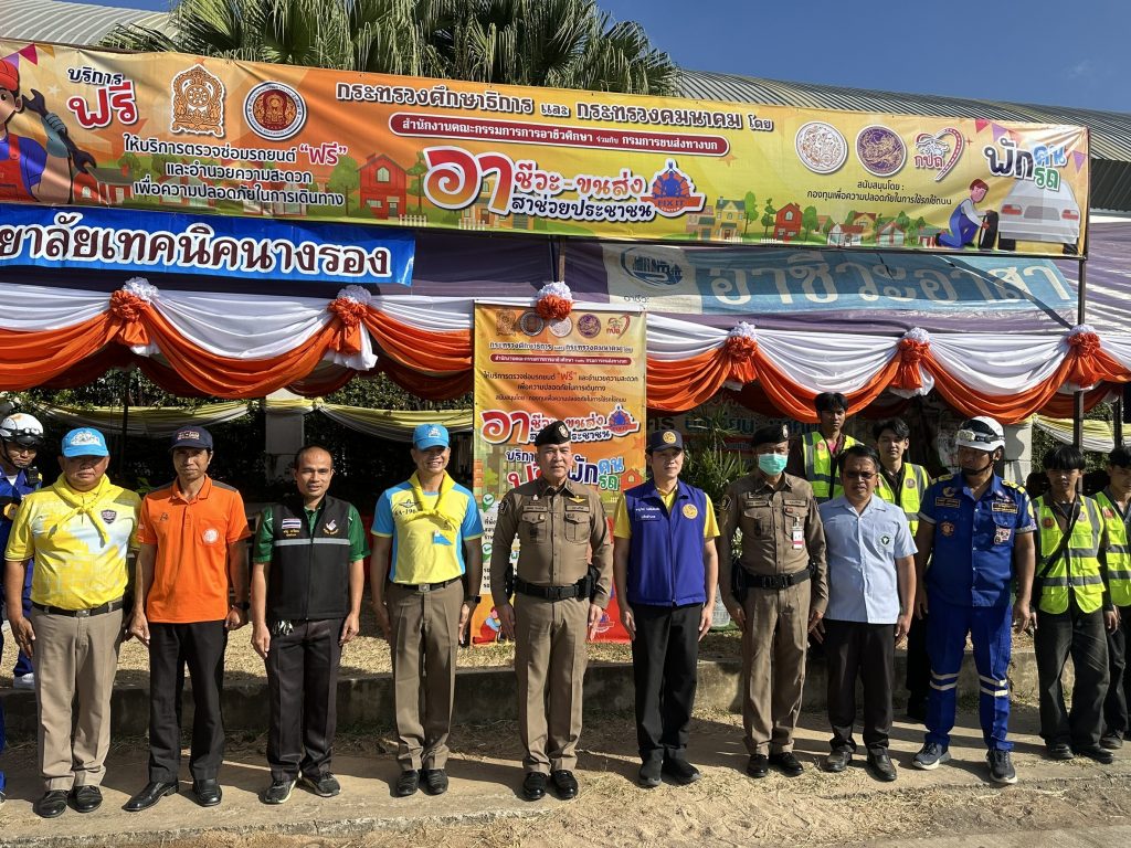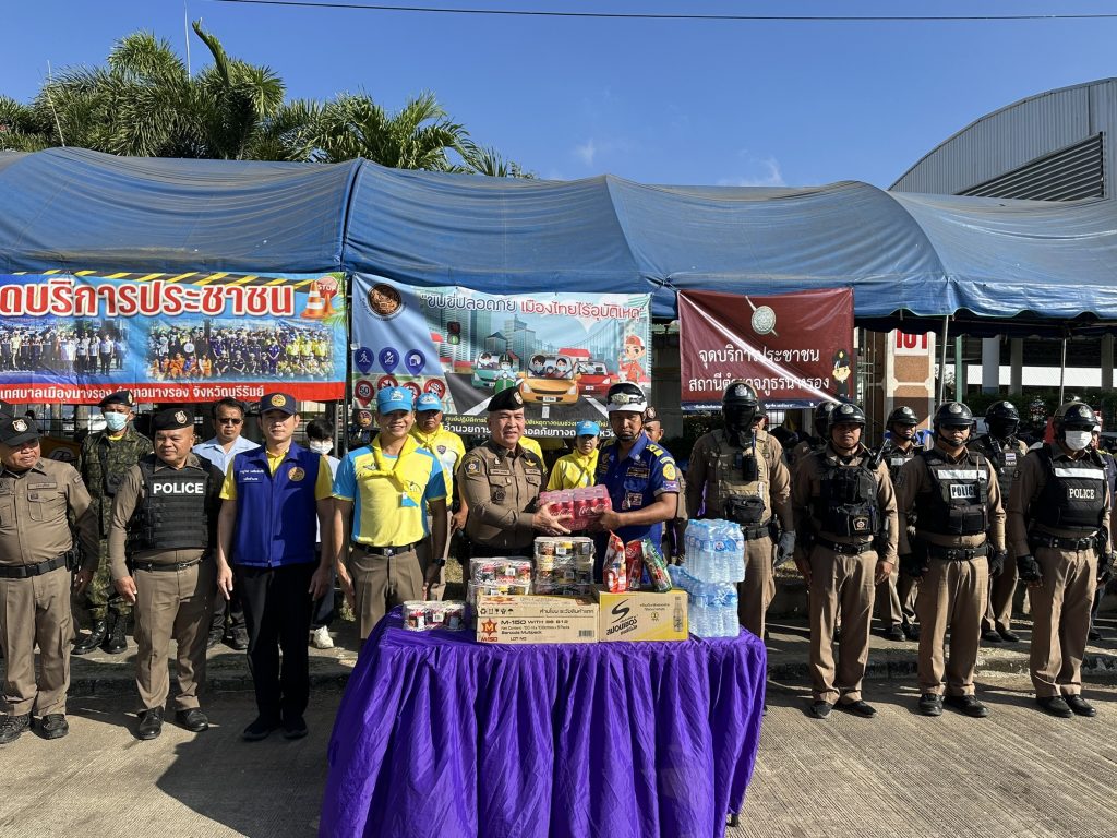 วันที่ 31 ธันวาคม 2567 เวลา 09.00 น. พล.ต.ต.รุทธพล เนาวรัตน์ ผบก.ภ.จว.บุรีรัมย์ ได้เดินทางมาตรวจเยี่ยมจุดบริการประชาชน สภ.นางรอง ในช่วงเทศกาลปีใหม่ พ.ศ.2568 พบ พ.ต.อ.กัมพล วงษ์สงวน ผกก.สภ.นางรอง, เจ้าหน้าที่ตำรวจ, ฝ่ายปกครอง, สาธารณสุข และเจ้าหน้าที่ในส่วนที่เกี่ยวข้องอยู่ปฏิบัติหน้าที่ พร้อมได้กำชับการปฏิบัติหน้าที่ในการบริการประชาชนและอำนวยความสะดวกด้านการจราจรให้เป็นไปด้วยความเรียบร้อย ใช้กิริยาวาจาด้วยความสุภาพ ในการนี้ได้มอบสิ่งของบํารุงขวัญในการปฏิบัติหน้าที่ และหมวกนิรภัย ตามโครงการ “จิตอาสาจราจร รณรงค์ขับขี่ปลอดภัย สวมหมวกนิรภัย เพื่อลดอุบัติเหตุจราจร ในช่วงเทศกาลปีใหม่ พ.ศ.2568 ” ให้กับประชาชนผู้ใช้รถใช้ถนน ณ จุดบริการประชาชน สภ.นางรอง บริเวณหน้าเทศบาลเมืองนางรอง อ.นางรอง จ.บุรีรัมย์