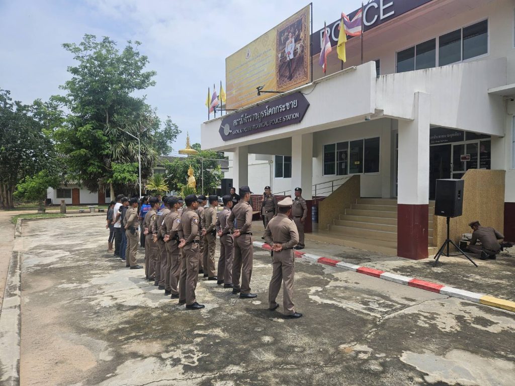 วันที่ 1 ก.ค.68 เวลาประมาณ 13.00 น. พล.ต.ต.ณรงค์ศักดิ์ พรหมทา ผบก.ภ.จว.บุรีรัมย์ พร้อมด้วย คุณศิรินาถ จินดามณี ประธานแม่บ้านตำรวจภูธรจังหวัดบุรีรัมย์ เดินทางมาตรวจเยี่ยมและให้กำลังใจการปฏิบัติงานเจ้าหน้าที่ตำรวจ สภ.โคกกระชาย พบ พ.ต.ท.ไกรสิทธิ์ หาญยิ่ง สวญ.สภ.โคกกระชาย รายงานสถานการณ์ในพื้นที่