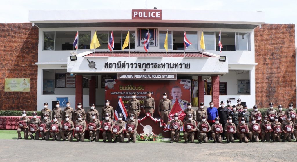 โดยมี พล.ต.ต.พรชัย นลวชัย รอง ผบช.ภ.3, พล.ต.ต.รุทธพล เนาวรัตน์ ผบก.ภ.จว.บุรีรัมย์, พ.ต.อ.ปริญญา พรเดชาพิพัฒ รอง ผบก.ภ.จว.บุรีรัมย์, พ.ต.อ.อดุลย์ ชัยประสิทธิกุล รอง ผบก.ภ.จว.บุรีรัมย์, พ.ท.ประสิทธิ์ชัย สุพิมพ์ รอง ผบ.ฉก.ทพ.26, ร.ต.เสถียร สาระสิทธิ์ นายอำเภอละหานทราย, พ.ต.อ.มนัสวุฒิ บรรยงค์ ผกก.สภ.ละหานทราย, พ.ต.อ.วิศิษฎ์ บัวสง่าวงศ์ ผกก.สภ.เฉลิมพระเกียรติ, พ.ต.อ.ยรรยง ทองใบใหญ่ ผกก.สภ.พลับพลาชัย, พ.ต.อ.วิษณุ อาภรณ์พงษ์ ผกก.สภ.ประโคนชัย, พ.ต.อ.ประดิษฐ์ ทะประสิทธิ์จิตต์ ผกก.สภ.ห้วยราช, พ.ต.อ.ธวัชชัย สร้อยสวัสดิ์ ผกก.สภ.บ้านกรวด, กต.ตร. และข้าราชการตำรวจ สภ.ละหานทราย ร่วมให้การต้อนรับ ณ สถานีตำรวจภูธรละหานทราย อ.ละหานทราย จ.บุรีรัมย์