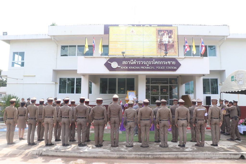 โดยมี พล.ต.ต.ณรงค์ศักดิ์ พรหมทา ผบก.ภ.จว.บุรีรัมย์ , พ.ต.อ.เจตน์สฤษฎิ์ แพ่งศรีสาร รอง ผบก.ภ.จว.บุรีรัมย์ , พ.ต.ท.ไกรสิทธิ์ หาญยิ่ง สวญ.สภ.โคกกระชาย และผู้ที่เกี่ยวข้อง รับมอบสิ่งของพระราชทาน ณ สภ.โคกกระชาย อ.บ้านกรวด จ.บุรีรัมย์