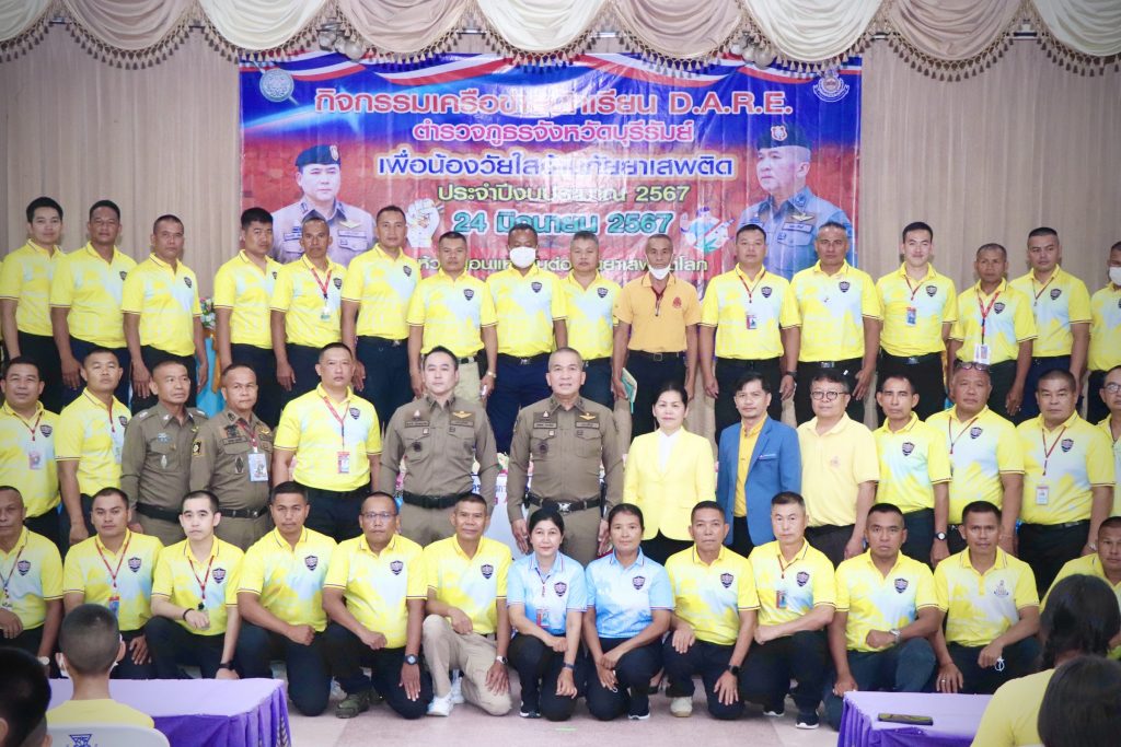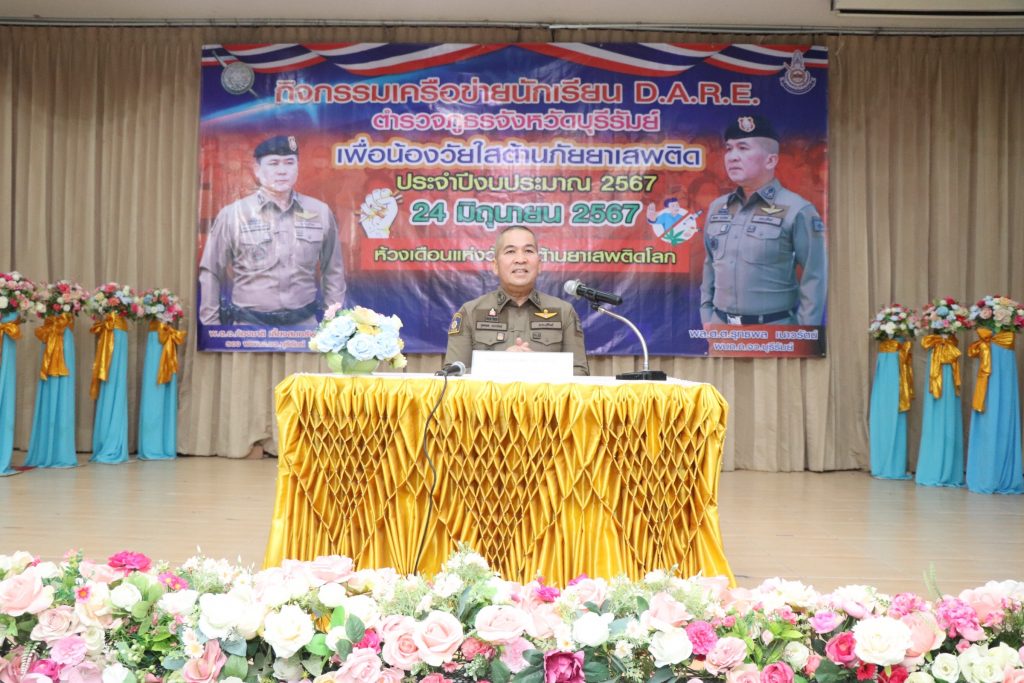 ร่วมพิธีเปิดโครงการฝึกอบรมกิจกรรมเครือข่ายนักเรียน D.A.R.E. “เพื่อน้องวัยใสต้านภัยยาเสพติด” ตำรวจภูธรจังหวัดบุรีรัมย์ ประจำปีงบประมาณ พ.ศ.2567 ณ หอประชุมบัวชมพู โรงเรียนอนุบาลบุรีรัมย์ อ.เมือง จ.บุรีรัมย์