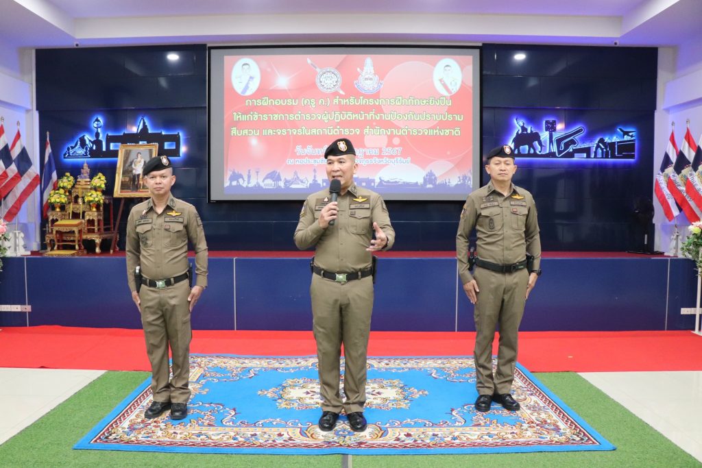 ร่วมพิธีเปิดการฝึกอบรมครูฝึก (ครู ค.) สำหรับโครงการฝึกทักษะยิงปืนให้แก่ ข้าราชการตำรวจผู้ปฏิบัติหน้าที่งานป้องกันปราบปราม สืบสวน และจราจรในสถานีตำรวจ ตำรวจภูธรจังหวัดบุรีรัมย์ ประจำปีงบประมาณ พ.ศ.2567 ณ หอประชุมชัยจินดา ภ.จว.บุรีรัมย์ อ.เมือง จ.บุรีรัมย์
