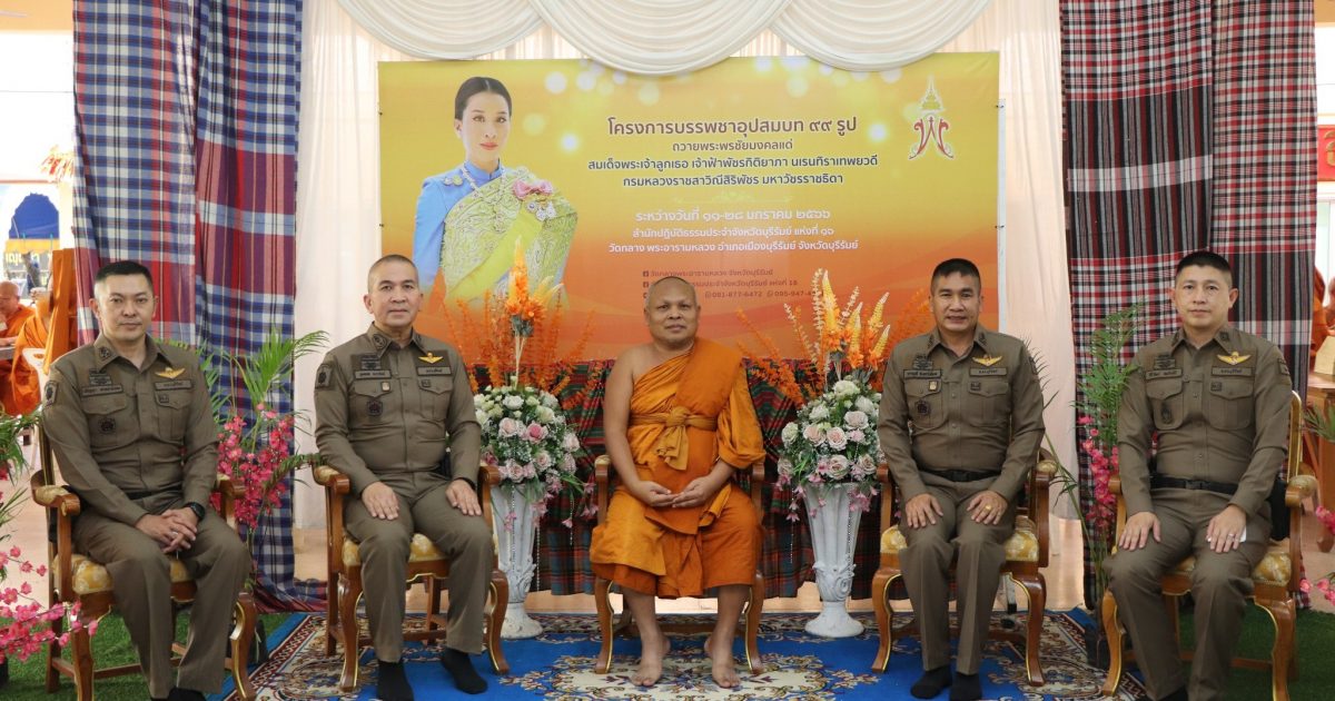 แด่พระภิกษุสงฆ์ ในโครงการอุปสมบท 99 รูป ถวายพระพรชัยมงคลแด่สมเด็จพระเจ้าลูกเธอ เจ้าฟ้าพัชรกิติยาภา นเรนทิราเทพยวดี กรมหลวงราชสาริณีสิริพัชร มหาวัชรราชธิดา พร้อมด้วย พ.ต.อ.วรายุส์ จันทร์เยี่ยม รอง ผบก.ฯ ปรก.ภ.จว.บุรีรัมย์,พ.ต.อ.ปริญญา พรเดชาพิพัฒ รอง ผบก.ภ.จว.บุรีรัมย์,และข้าราชการตำรวจในสังกัดตำรวจภูธรจังหวัดบุรีรัมย์ ร่วมถวายน้ำปานะโดยในจำนวนนี้มีข้าราชการตำรวจ อุปสมบท จำนวน 34 รูป ณ ศาลาอเนกประสงค์วัดกลางพระอารามหลวง อ.เมืองบุรีรัมย์ จว.บุรีรัมย์