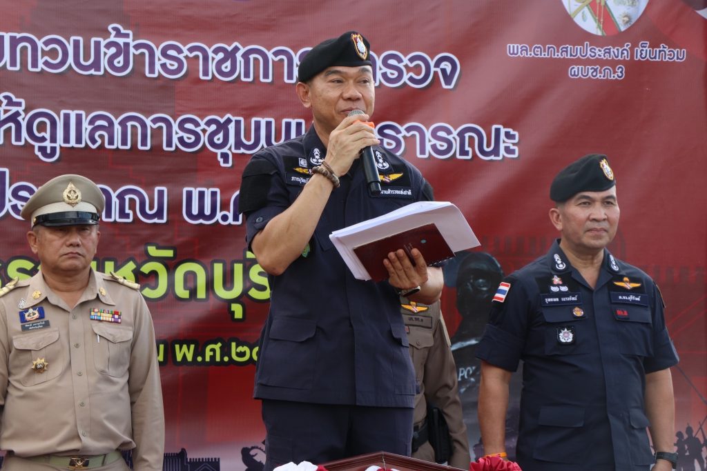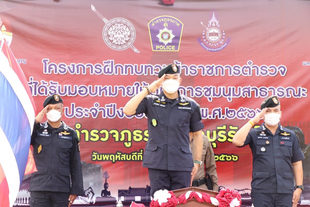 วันที่ 15 มิถุนายน 2566 เวลา 15.00 น. พล.ต.ท.ภาณุรัตน์ หลักบุญ ผู้ช่วย ผบ.ตร. เป็นประธานพิธีปิดการฝึกทบทวนข้าราชการตำรวจซึ่งปฏิบัติหน้าที่ดูแลการชุมนุมสาธารณะ ประจำปีงบประมาณ พ.ศ.2566 กองร้อยควบคุมฝูงชน ตำรวจภูธรจังหวัดบุรีรัมย์ โดยมี พล.ต.ต.ธรรมศักดิ์ ปิ่นทอง รอง ผบช.ภ.3, พล.ต.ต.รุทธพล เนาวรัตน์ ผบก.ภ.จว.บุรีรัมย์, พ.อ.สันทัด จันทน์มาลา รอง ผบช.มทบ.26, นายชัยยงค์ เมธาสุรวิทย์ ปลัดจังหวัดบุรีรัมย์ และข้าราชการตำรวจในสังกัด ภ.จว.บุรีรัมย์ ร่วมต้อนรับและร่วมพิธีฯ ณ สนามกีฬากองร้อยอาสารักษาดินแดนจังหวัดบุรีรัมย์ อ.เมือง จ.บุรีรัมย์
