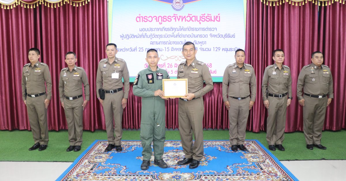 ร่วมพิธีมอบประกาศเกียรติคุณให้กับผู้มีผลปฏิบัติงานดีเด่นด้านป้องกันปราบอาชญากรรมและจับกุมยาเสพติด และมอบใบประกาศเกียรติคุณให้แก่ผู้ปฏิบัติงานเก็บกู้วัตถุระเบิดในพื้นที่อำเภอบ้านกรวด สถานการณ์ชายแดนไทย-กัมพูชา และประชุมบริหารตำรวจภูธรจังหวัดบุรีรัมย์ ประจำเดือนสิงหาคม 2568 ณ ห้องประชุมชั้น 5 ตำรวจภูธรจังหวัดบุรีรัมย์
