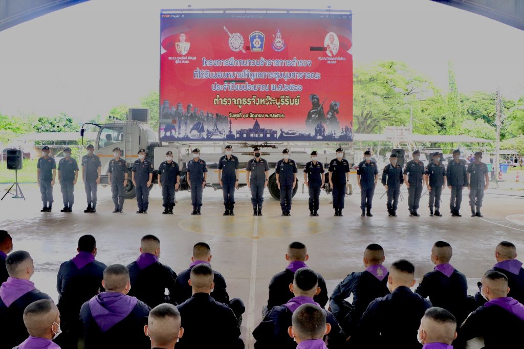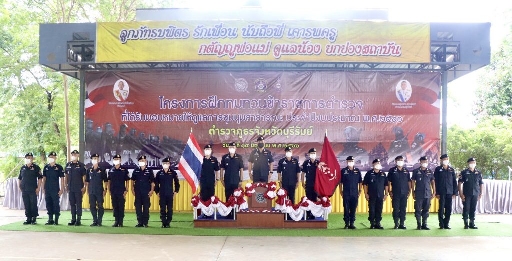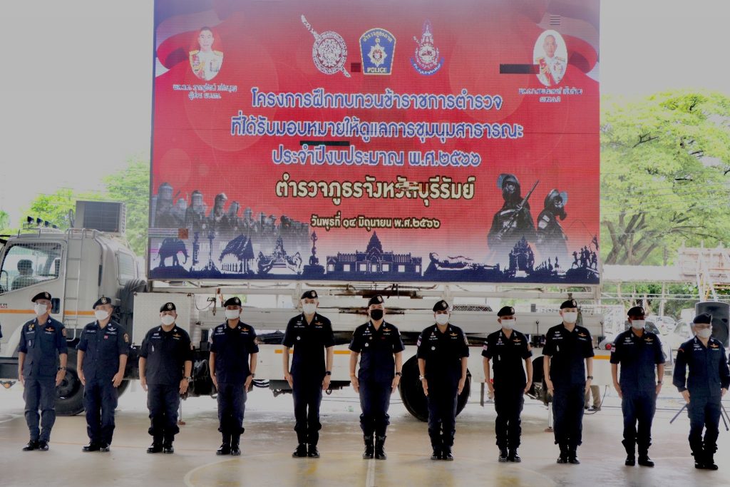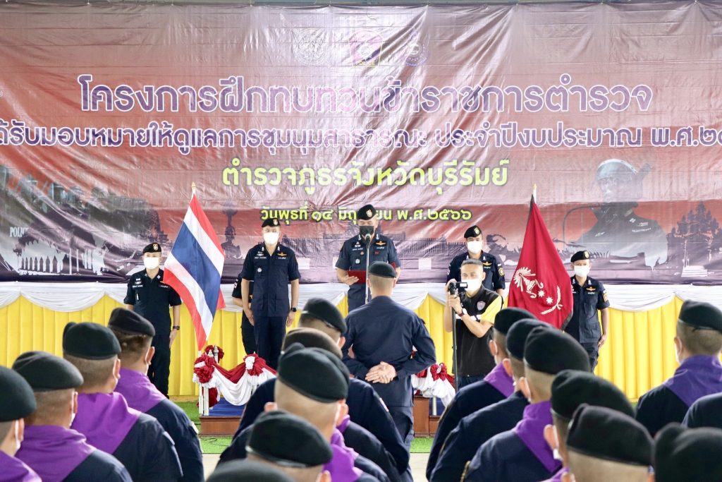 ร่วมพิธีเปิดการฝึกทบทวนข้าราชการตำรวจซึ่งปฏิบัติหน้าที่ดูแลการชุมนุมสาธารณะ ประจำปีงบประมาณ พ.ศ.2566 กองร้อยควบคุมฝูงชน ตำรวจภูธรจังหวัดบุรีรัมย์ ณ โดมอเนกประสงค์ โรงเรียนภัทรบพิตร อ.เมือง จ.บุรีรัมย์