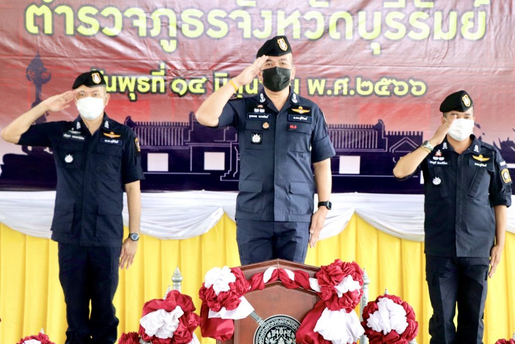 วันที่ 14 มิถุนายน 2566 เวลา 10.00 น. พล.ต.ต.รุทธพล เนาวรัตน์ ผบก.ภ.จว.บุรีรัมย์ เป็นประธานในพิธี พร้อมด้วย พ.ต.อ.วรายุส์ จันทร์เยี่ยม รอง ผบก.ฯ ปรก.ภ.จว.บุรีรัมย์, พ.ต.อ.ปริญญา พรเดชาพิพัฒ รอง ผบก.ภ.จว.บุรีรัมย์, พ.ต.อ.ชูสิทธิ์ หล่อแสง รอง ผบก.ภ.จว.บุรีรัมย์, ผู้ร่วมสังเกตการณ์, คณะวิทยากรครูฝึก และข้าราชการตำรวจผู้เข้ารับการฝึก