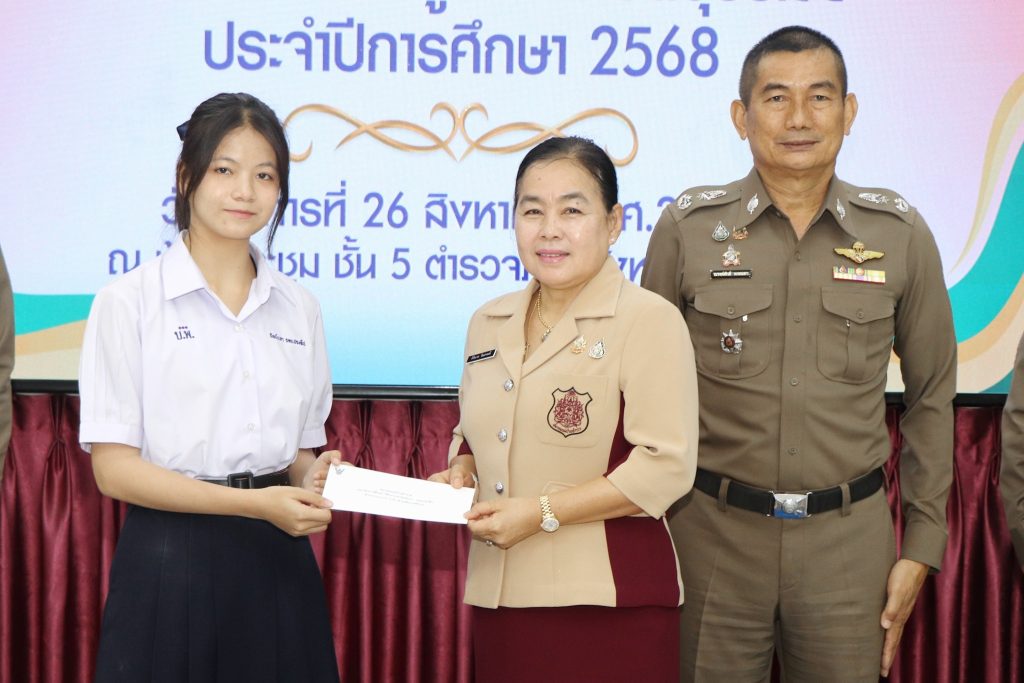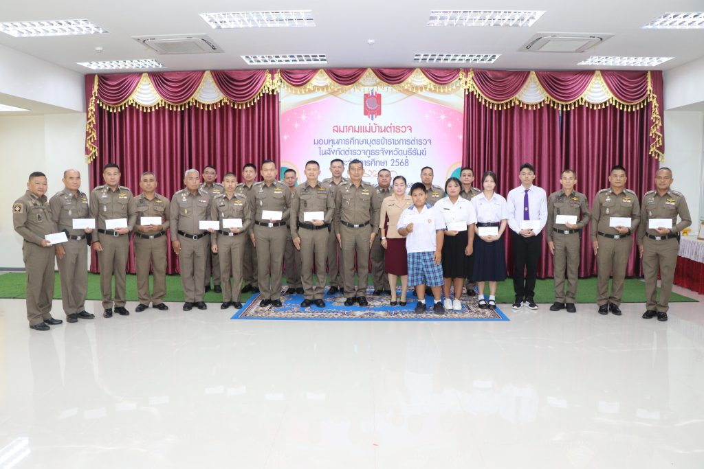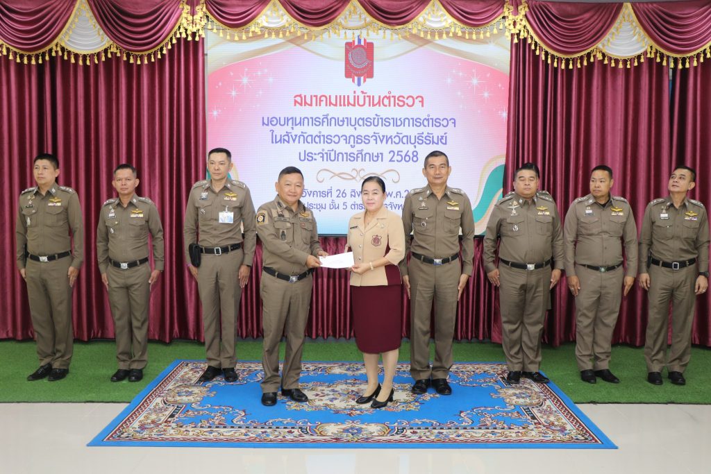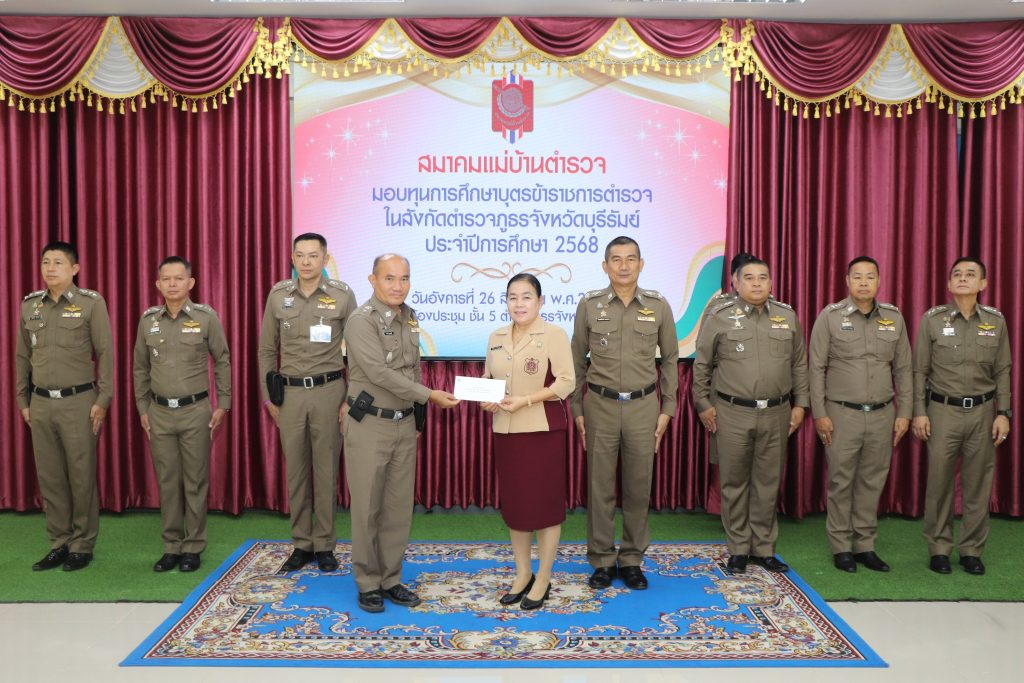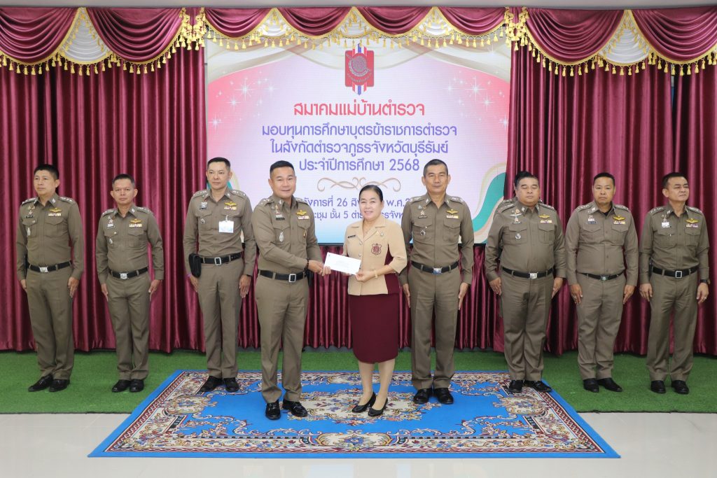 วันที่ 26 ส.ค. 68 เวลาประมาณ 10.00 น. พล.ต.ต.ณรงค์ศักดิ์ พรหมทา ผบก.ภ.จว.บุรีรัมย์ พร้อมด้วย คุณศิรินาถ จินดามณี ประธานแม่บ้านตำรวจภูธรจังหวัดบุรีรัมย์ , พ.ต.อ.ปริญญา พรเดชาพิพัฒ รอง ผบก.ภ.จว.บุรีรัมย์ , พ.ต.อ.ก้องชาติ เลี้ยงสมทรัพย์ รอง ผบก.ภ.จว.บุรีรัมย์ , พ.ต.อ.พงศ์พันษ์ พลวงษ์ศรี รอง ผบก.ภ.จว.บุรีรัมย์ , พ.ต.อ.เจตน์สฤษฎิ์ แพ่งศรีสาร รอง ผบก.ภ.จว.บุรีรัมย์ , พ.ต.อ.ชูสิทธิ์ หล่อแสง รอง ผบก.ภ.จว.บุรีรัมย์ , พ.ต.อ.อโณทัย จินดามณี รอง ผบก.ฯ ปฏิบัติราชการ รอง ผบก.ภ.จว.บุรีรัมย์ , พ.ต.อ.ศิริวัฒน์ สมกิจศิริ รอง ผบก.ภ.จว.บุรีรัมย์ , หัวน้าสถานีในสังกัด ภ.จว.บุรีรัมย์ และผู้ที่เกี่ยวข้อง ร่วมพิธีมอบทุนการศึกษาบุตรข้าราชการตำรวจในสังกัดตำรวจภูธรจังหวัดบุรีรัมย์ ประจำปีการศึก 2568 ณ ห้องประชุมชั้น 5 ตำรวจภูธรจังหวัดบุรีรัมย์