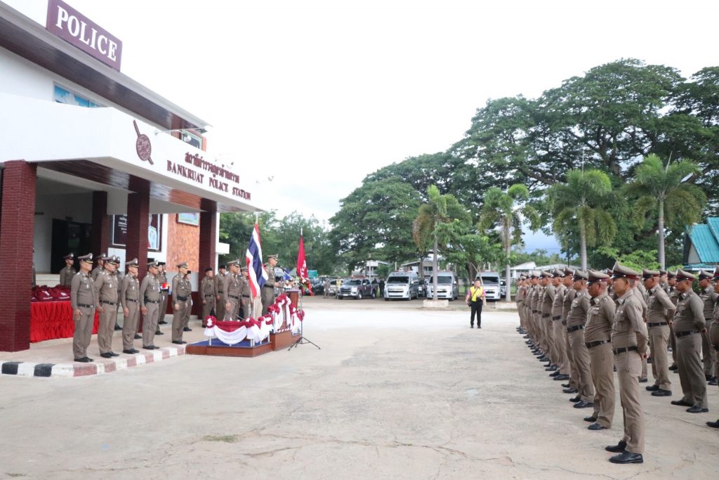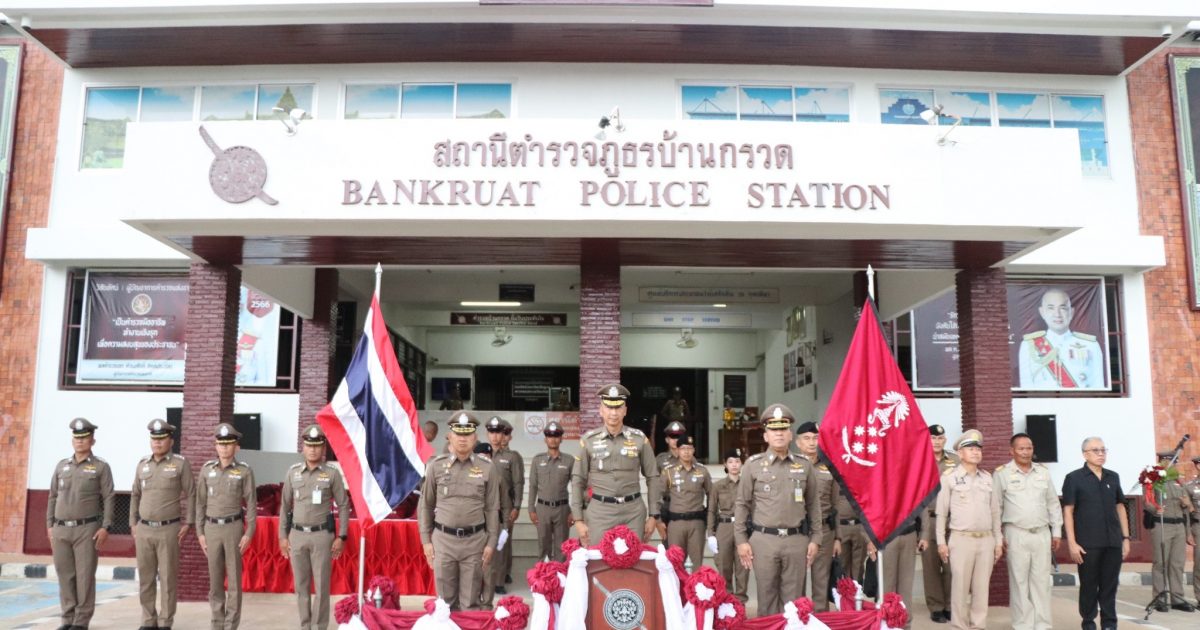 วันที่ 21 กันยายน 2566 เวลา 12.10 น. พล.ต.อ.ต่อศักดิ์ สุขวิมล รอง ผบ.ตร. และคณะ เดินทางมาตรวจเยี่ยมหน่วย พื้นที่ จ.บุรีรัมย์ พร้อมมอบสิ่งของบำรุงขวัญประจำปี พ.ศ.2566 ให้แก่ สภ.บ้านกรวดและฐานปฏิบัติการช่องโอบก ร้อย ตชด.216 โดยมี พล.ต.ท.สมประสงค์ เย็นท้วม ผบช.ภ.3, พล.ต.ต.รุทธพล เนาวรัตน์ ผบก.ภ.จว.บุรีรัมย์, พ.ต.อ.วรายุส์ จันทร์เยี่ยม รอง ผบก.ฯ ปรก.ภ.จว.บุรีรัมย์, นายบุญเต็ม กัลยาพานิช นายอำเภอบ้านกรวด, พ.ต.อ.ญาณะธัช ชัยพชรโชติ ผกก.สภ.บ้านกรวด และข้าราชการตำรวจในสังกัด ภ.จว.บุรีรัมย์ ร่วมต้อนรับ – ส่ง ณ สนาม ฮ. ชั่วคราว อบต.ตลาดนิคมปราสาท อ.บ้านกรวด จ.บุรีรัมย์