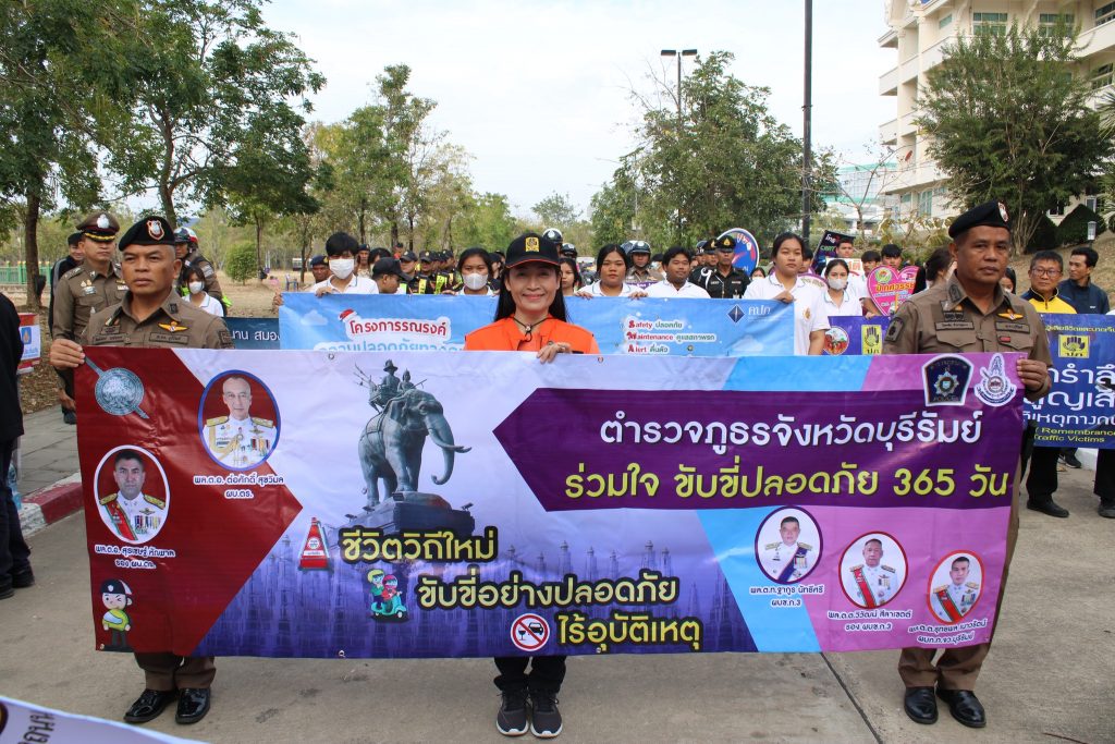 ร่วมกิจกรรมรณรงค์การป้องกันและลดอุบัติเหตุทางถนน ช่วงเทศกาลปีใหม่ พ.ศ.2567 ได้แจกหมวกนิรภัย แจกเครื่องดื่ม แผ่นประชาสัมพันธ์การลดอุบัติเหตุบนท้องถนน ตรวจจับความเร็วรถยนต์และตรวจวัดแอลกอฮอล์ผู้ขับขี่ โดยมี นายนฤชา โฆษาศิวิไลซ์ ผู้ว่าราชการจังหวัดบุรีรัมย์ เป็นประธาน ณ บริเวณหน้าศาลากลางจังหวัดบุรีรัมย์ และแยกภัทรบพิตร อ.เมือง จ.บุรีรัมย์