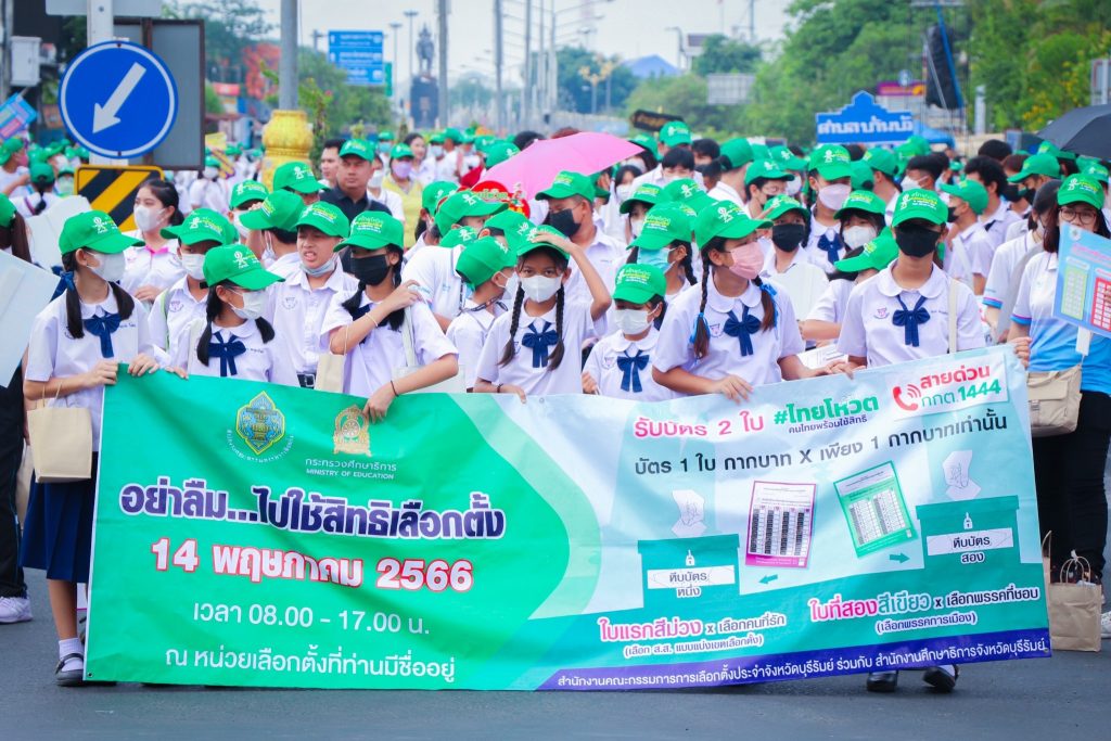 วันที่ 9 พฤษภาคม 2566 เวลา 08.00 น. พล.ต.ต.รุทธพล เนาวรัตน์ ผบก.ภ.จว.บุรีรัมย์ ร่วมกิจกรรมรณรงค์เชิญชวนออกไปใช้สิทธิเลือกตั้ง ส.ส. 2566 (Big Day) จังหวัดบุรีรัมย์ โดยมี นายสิงหชัย ผ่องบุรุษ รองผู้ว่าราชการจังหวัดบุรีรัมย์ เป็นประธาน ณ ด้านหน้าศาลากลางจังหวัดบุรีรัมย์(หลังเดิม) อ.เมือง จ.บุรีรัมย์