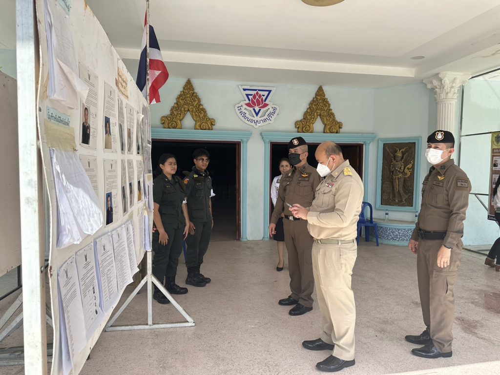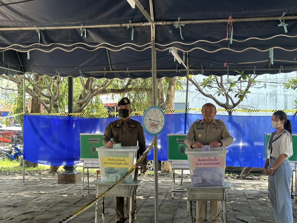 วันที่ 14 พฤษภาคม 2566 เวลา 09.00 น. พล.ต.ต.รุทธพล เนาวรัตน์ ผบก.ภ.จว.บุรีรัมย์ พร้อมด้วย พ.ต.อ.ศิริวัฒน์ สมกิจศิริ ผกก.สภ.เมืองบุรีรัมย์ ,พ.ต.ท.ธนานนท์ ไชยสิน รอง ผกก.ป.สภ.เมืองบุรีรัมย์, พ.ต.ท.อานนท์ เหล็กดี รอง.ผกก.จร สภ.เมืองบุรีรัมย์ ร่วมตรวจเยี่ยมหน่วยเลือกตั้งสมาชิกสภาผู้แทนราษฎร เขตเลือกตั้งที่ 1 หน่วยเลือกตั้งที่ 4 และใช้สิทธิเลือกตั้ง ณ ปะรำหน้าเวทีลานวัฒนธรรม อ.เมืองบุรีรัมย์ จว.บุรีรัมย์ พบเจ้าหน้าที่ประจำหน่วยเลือกตั้ง อยู่ปฏิบัติหน้าที่รายงานเหตุการณ์ปกติ