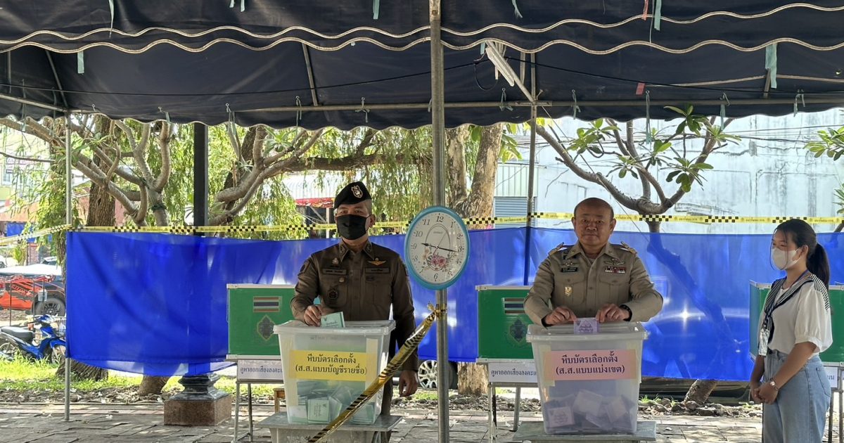 วันที่ 14 พฤษภาคม 2566 เวลา 09.00 น. พล.ต.ต.รุทธพล เนาวรัตน์ ผบก.ภ.จว.บุรีรัมย์ พร้อมด้วย พ.ต.อ.ศิริวัฒน์ สมกิจศิริ ผกก.สภ.เมืองบุรีรัมย์ ,พ.ต.ท.ธนานนท์ ไชยสิน รอง ผกก.ป.สภ.เมืองบุรีรัมย์, พ.ต.ท.อานนท์ เหล็กดี รอง.ผกก.จร สภ.เมืองบุรีรัมย์ ร่วมตรวจเยี่ยมหน่วยเลือกตั้งสมาชิกสภาผู้แทนราษฎร เขตเลือกตั้งที่ 1 หน่วยเลือกตั้งที่ 4 และใช้สิทธิเลือกตั้ง ณ ปะรำหน้าเวทีลานวัฒนธรรม อ.เมืองบุรีรัมย์ จว.บุรีรัมย์ พบเจ้าหน้าที่ประจำหน่วยเลือกตั้ง อยู่ปฏิบัติหน้าที่รายงานเหตุการณ์ปกติ
