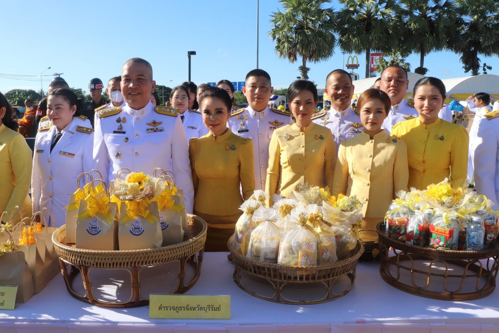 วันที่ 13 ตุลาคม 2566 เวลา 07.30 น. พล.ต.ต.รุทธพล เนาวรัตน์ ผบก.ภ.จว.บุรีรัมย์ พร้อมด้วย คุณรุ่งรัตน์ เนาวรัตน์ ประธานแม่บ้านตำรวจภูธรจังหวัดบุรีรัมย์, พ.ต.อ.กัมพล วงษ์สงวน ผกก.สภ.นางรอง, พ.ต.อ.ศิริวัฒน์ สมกิจศิริ ผกก.สภ.เมืองบุรีรัมย์, พ.ต.ท.อานนท์ เหล็กดี รอง ผกก.จร.สภ.เมืองบุรีรัมย์ และข้าราชการตำรวจในสังกัด ตำรวจภูธรจังหวัดบุรีรัมย์
