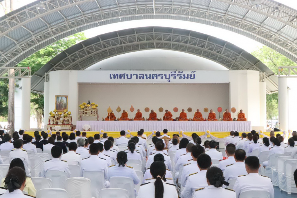 ร่วมพิธีสวดพระพุทธมนต์และพิธีทำบุญตักบาตรถวายพระราชกุศล เนื่องในวันที่ระลึก “พระบาทสมเด็จพระพุทธยอดฟ้าจุฬาโลกมหาราชและวันที่ระลึกมหาจักรีบรมราชวงศ์” จังหวัดบุรีรัมย์ ณ โดมสวนรมย์บุรี 200 ปี เทศบาลนครบุรีรัมย์