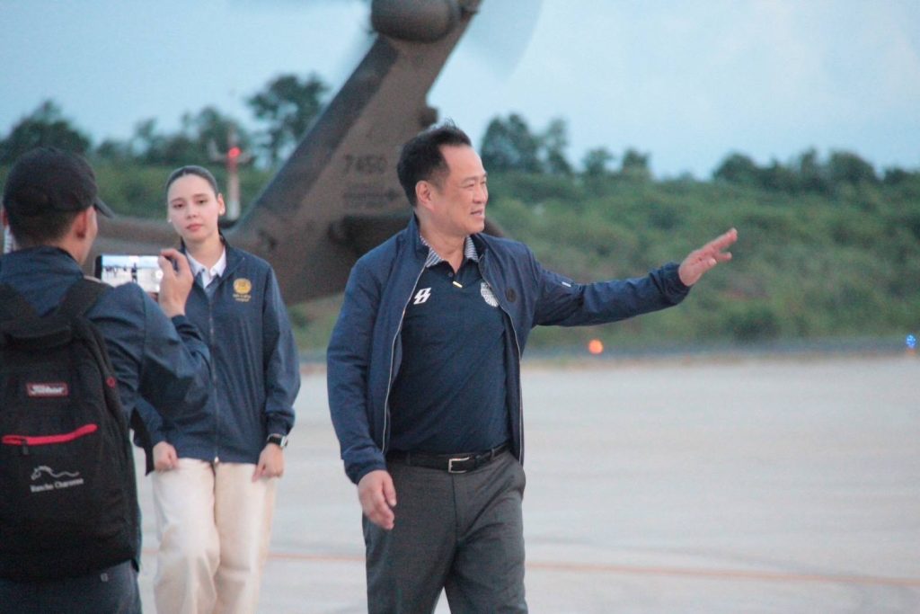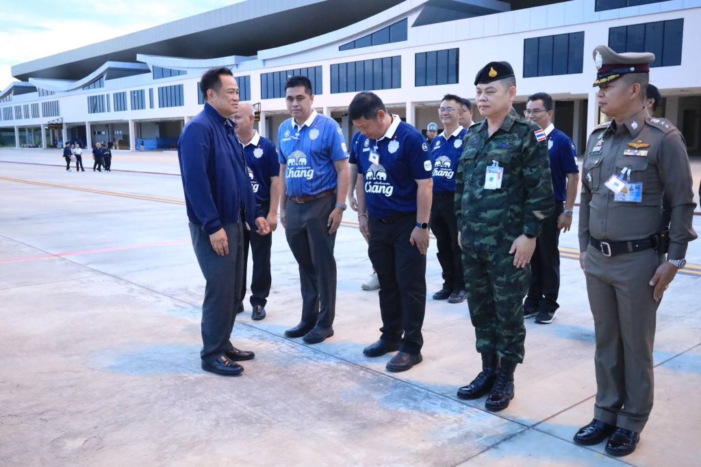 นายกรัฐมนตรีไทย และรัฐมนตรีว่าการกระทรวงมหาดไทย หลังเสร็จสิ้นภารกิจจังหวัดบุรีรัมย์ ณ ท่าอากาศยานบุรีรัมย์