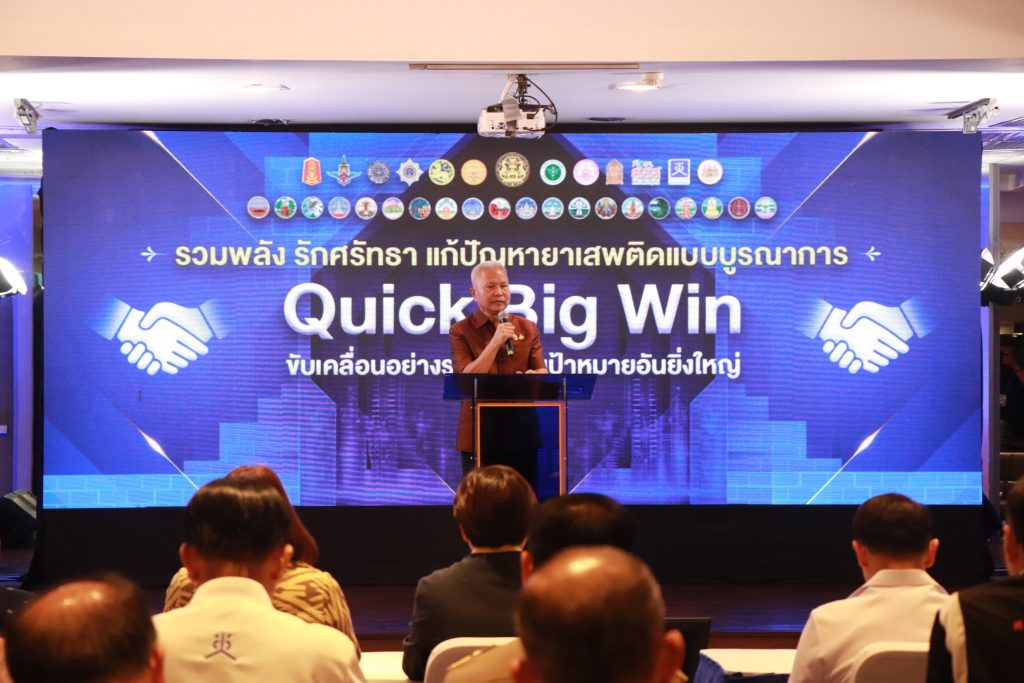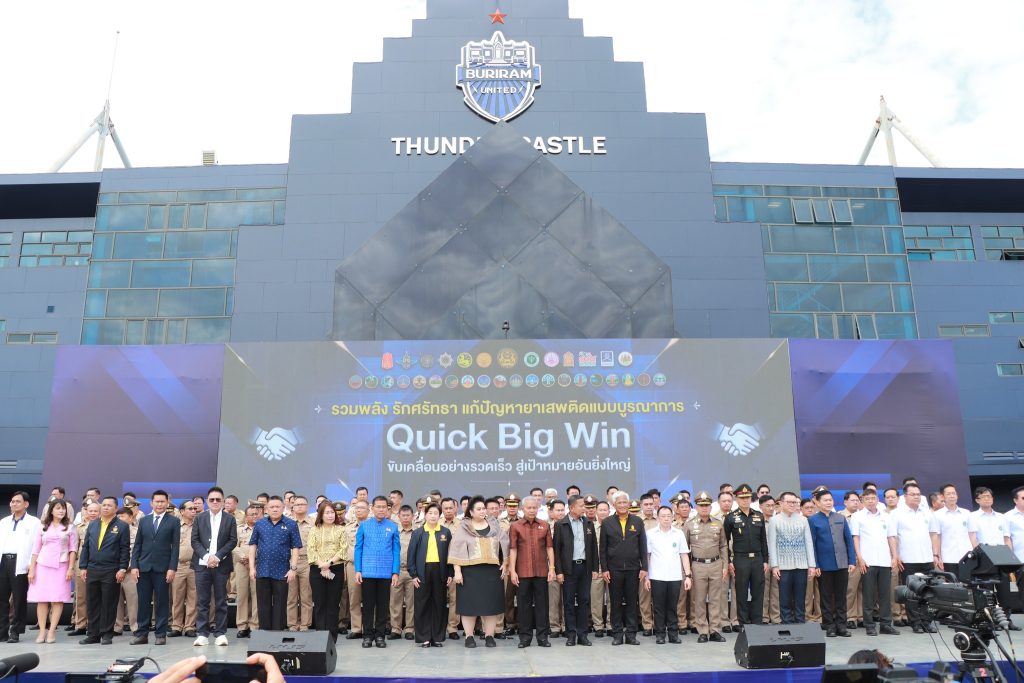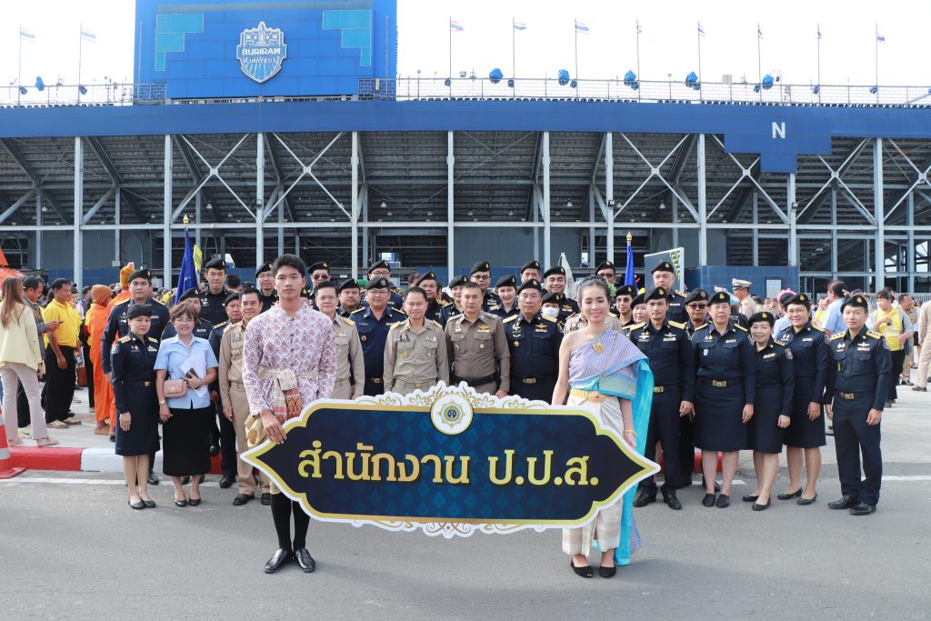 วันที่ 24 ต.ค.68 เวลา 08.30 น. พล.ต.ต.วรายุส์ จันทร์เยี่ยม ผบก.ภ.จว.บุรีรัมย์ ร่วมพิธีเปิดงาน “รวมพลังรัก ศรัทธา แก้ปัญหายาเสพติดแบบบูรณาการ” Quick Big Win : ขับเคลื่อนอย่างรวดเร็ว สู่เป้าหมายอันยิ่งใหญ่ โดยมี นายโสภณ ซารัมย์ รองนายกรัฐมนตรี ให้เกียรติเป็นประธานในพิธีเปิดงาน พร้อมด้วยหน่วยงานที่เกี่ยวข้องทั้ง 20 จังหวัด ร่วมเดินขบวนพาเหรดและกิจกรรมแสดงพลังความร่วมมือในการแก้ปัญหายาเสพติด พร้อมรับมอบนโยบายในการกำกับและติดตามการปฎิบัติงาน ณ สนามช้างอารีน่า อ.เมืองบุรีรัมย์ จังหวัดบุรีรัมย์