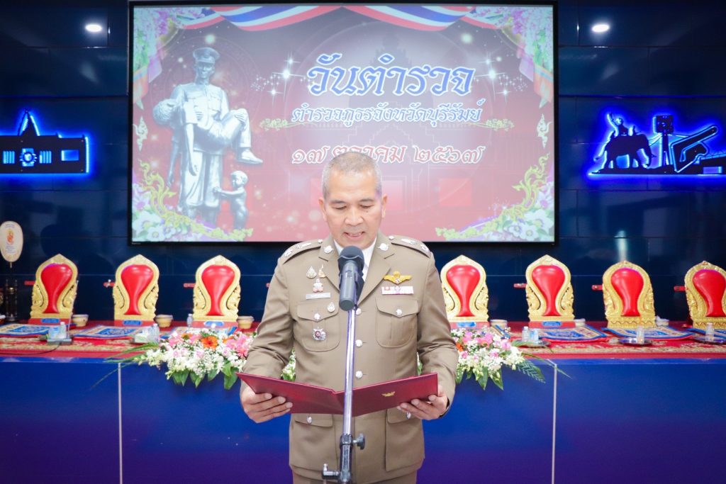 ร่วมกิจกรรมเนื่องใน วันตำรวจ ประจำปี 2567 พร้อมประกอบพิธีทางศาสนา อ่านสารของ ผบ.ตร. กล่าวคำสัตย์ปฏิญาณตน และกล่าวให้โอวาทแก่ข้าราชการตำรวจในสังกัด ภ.จว.บุรีรัมย์ ณ หอประชุมชัยจินดา ภ.จว.บุรีรัมย์ อ.เมือง จ.บุรีรัมย์