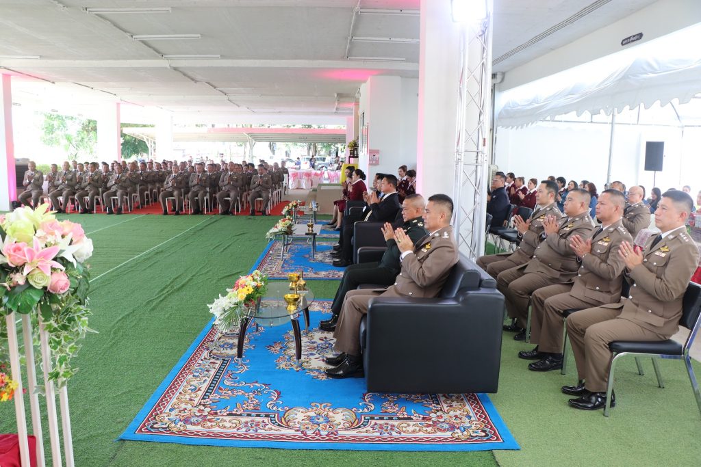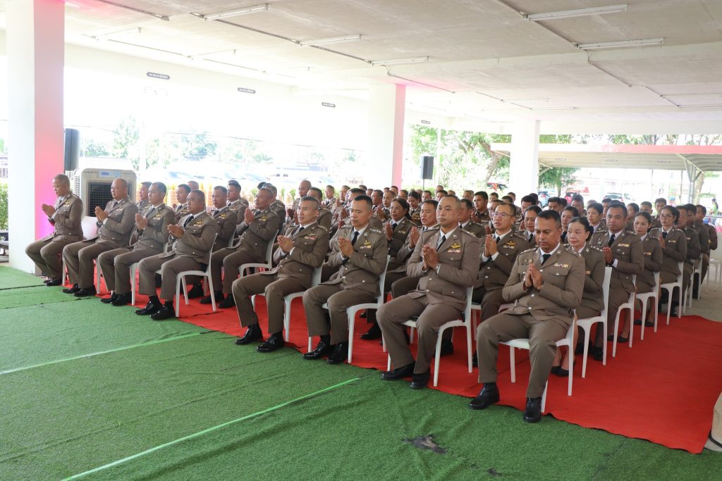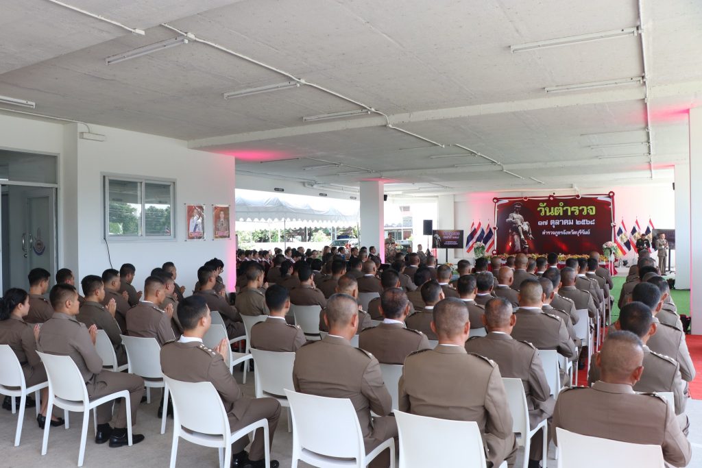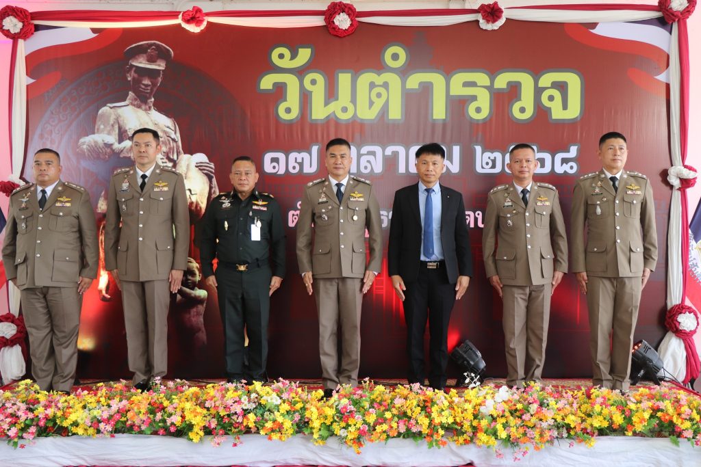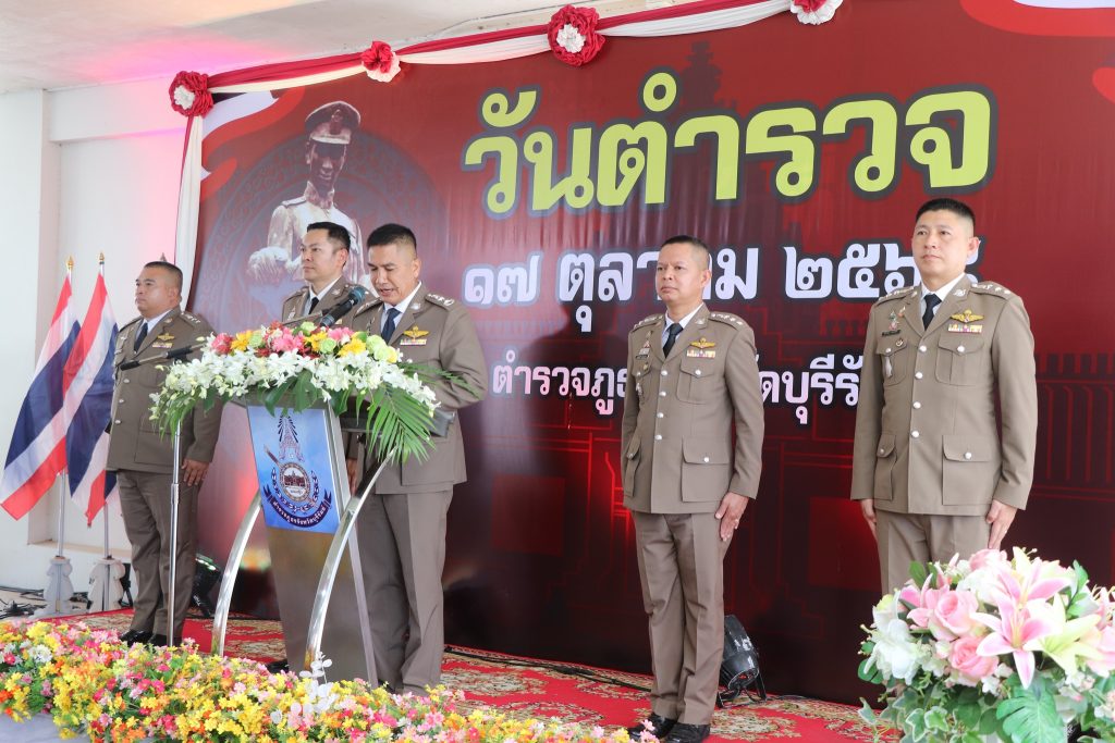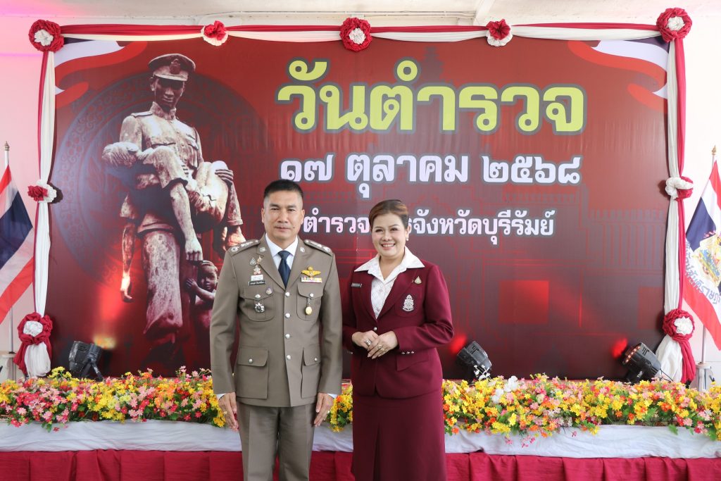 ร่วมกิจกรรมเนื่องในวันตำรวจ ประจำปี 2568 พร้อมประกอบพิธีทางศาสนา อ่านสารของ ผบ.ตร. กล่าวคำสัตย์ปฏิญาณตน และกล่าวให้โอวาทแก่ข้าราชการตำรวจในสังกัด ภ.จว.บุรีรัมย์ โดยมี พล.ต.ชัยภัทร เงินดีเจริญ ผบ.มทบ.26, นายวรวุฒิ วุฒิภิรมย์ อัยการจังหวัดบุรีรัมย์, แพทย์หญิงภัคภร ปรฐนัทธ์ รองผู้อำนวยการฝ่ายการแพทย์ โรงพยาบาลบุรีรัมย์, กต.ตร.ภ.จว.บุรีรัมย์, แม่บ้านตำรวจฯ และเจ้าหน้าที่สหกรณ์ออมทรัพย์ตำรวจภูธรจังหวัดบุรีรัมย์ จำกัด ร่วมเป็นเกียรติในงาน ณ บริเวณพิธีใต้อาคาร ภ.จว.บุรีรัมย์ อ.เมือง จ.บุรีรัมย์