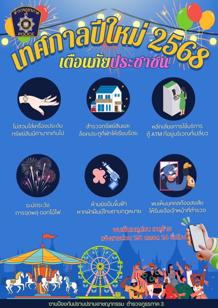 เตือนประชาชนในช่วงเทศกาลปีใหม่ 2568 23 ธันวาคม 2567 โดย admin / ข่าวประชาสัมพันธ์ #เตือนประชาชนในช่วงเทศกาลปีใหม่ 2568