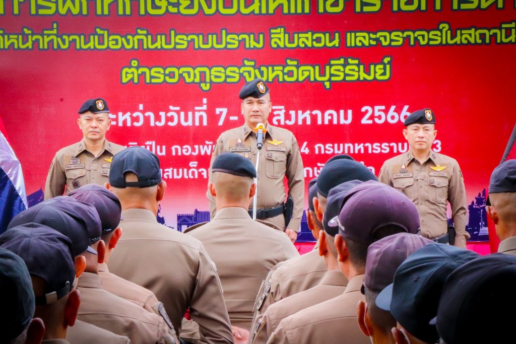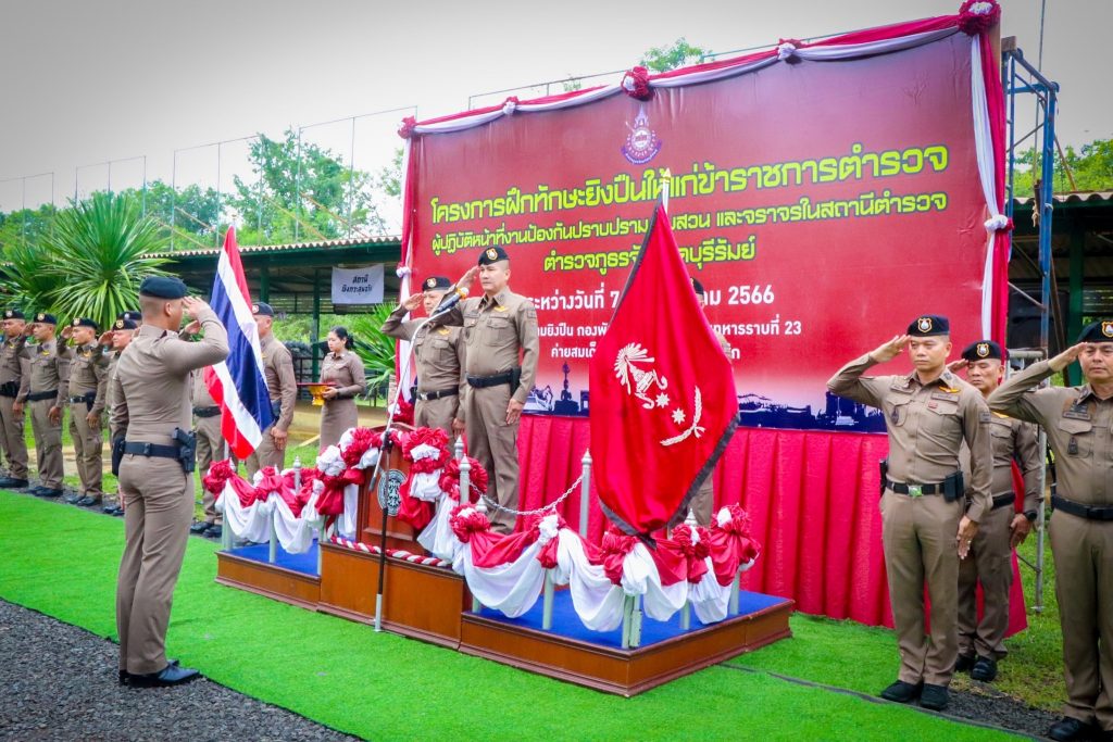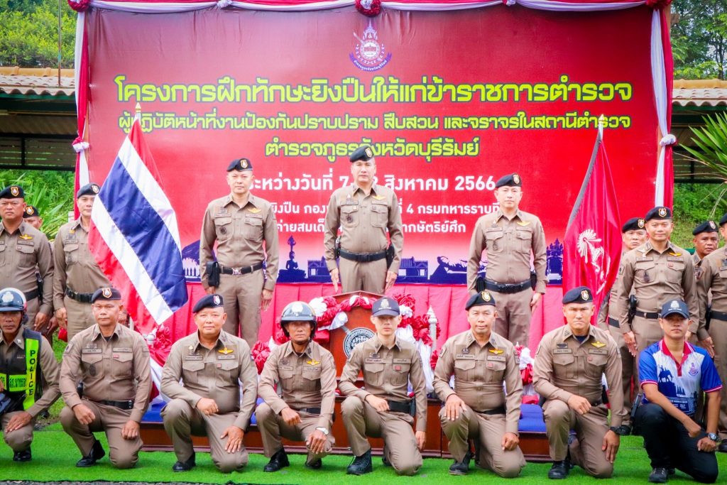 วันที่ 7 สิงหาคม 2566 เวลา 09.00 น. พล.ต.ต.รุทธพล เนาวรัตน์ ผบก.ภ.จว.บุรีรัมย์ มอบหมายให้ พ.ต.อ.วรายุส์ จันทร์เยี่ยม รอง ผบก.ฯ ปรก.ภ.จว.บุรีรัมย์ เป็นประธานเปิดโครงการฝึกทักษะยิงปืนให้แก่ข้าราชการตำรวจ ผู้ปฏิบัติหน้าที่งานป้องกันปราบปราม สืบสวน และจราจรในสถานีตำรวจ ตำรวจภูธรจังหวัดบุรีรัมย์ ประจำปี 2566 ระหว่างวันที่ 7-12 สิงหาคม 2566 พร้อมด้วย พ.ต.อ.ปริญญา พรเดชาพิพัฒ รอง ผบก.ภ.จว.บุรีรัมย์, พ.ต.อ.ศิริวัฒน์ สมกิจศิริ ผกก.สภ.เมืองบุรีรัมย์, หัวหน้าสถานีในสังกัด และผู้เข้าร่วมการฝึก ร่วมพิธีเปิด ฯ ณ สนามยิงปืน กองพันทหารราบที่ 4 กรมทหารราบที่ 3 ค่ายสมเด็จเจ้าพระยามหากษัตริย์ศึก อำเภอเมือง จังหวัดบุรีรัมย์