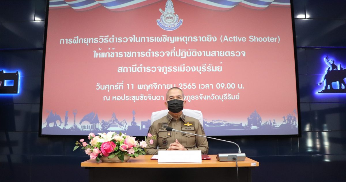 ตำรวจภูธรจังหวัดบุรีรัมย์ เปิดโครงการฝึกอบรมทบทวนยุทธวิธีการเข้าระงับเหตุ 242 เหตุคนร้ายกราดยิง Active Shooter