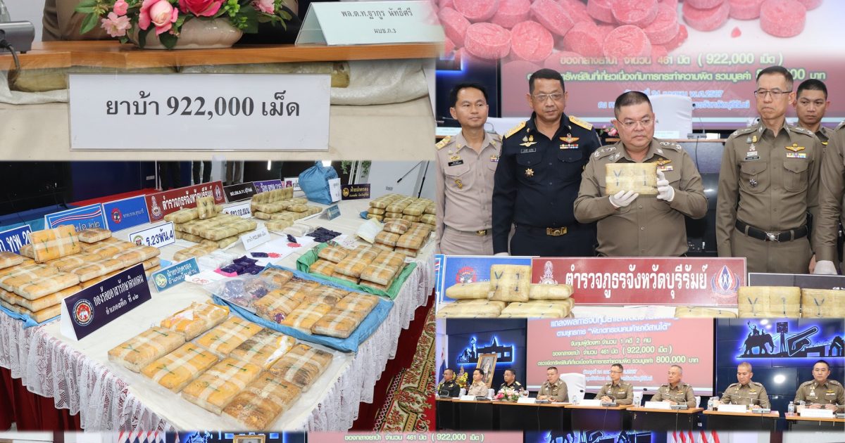 ร่วมแถลงผลการจับกุมคดียาเสพติด ตามยุทธการ “พิฆาตทรชนคนค้ายาอีสานใต้” ได้จับกุมผู้ต้องหา จำนวน 1 คดี ผู้ต้องหา 2 ราย ของกลาง ยาบ้า จำนวน 461 มัด (922,000 เม็ด) ตรวจยึดทรัพย์สินที่เกี่ยวเนื่องกับการกระทำความผิดเกี่ยวกับยาเสพติด ตามประมวลกฎหมายยาเสพติด ประกอบด้วย รถยนต์ 1 คัน รวมมูลค่าประมาณ 800,000 บาท ณ หอประชุมชัยจินดา ภ.จว.บุรีรัมย์ อ.เมือง จ.บุรีรัมย์