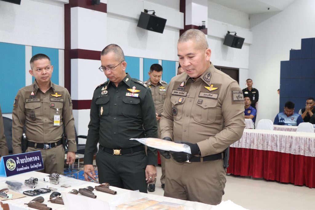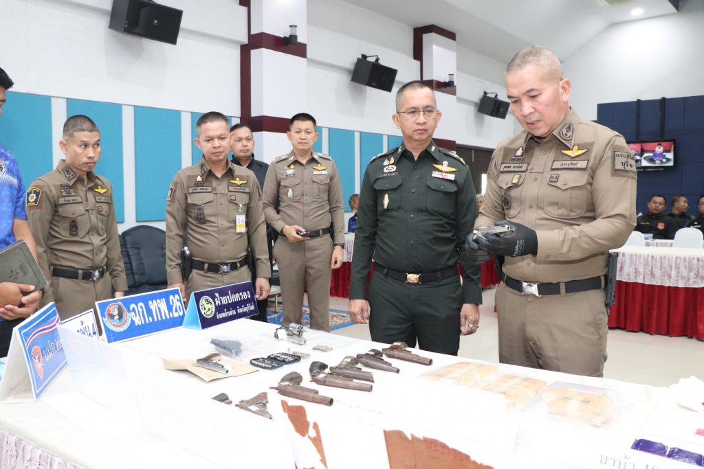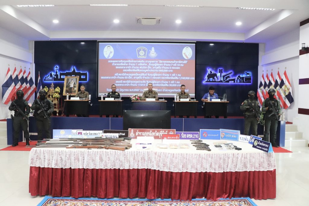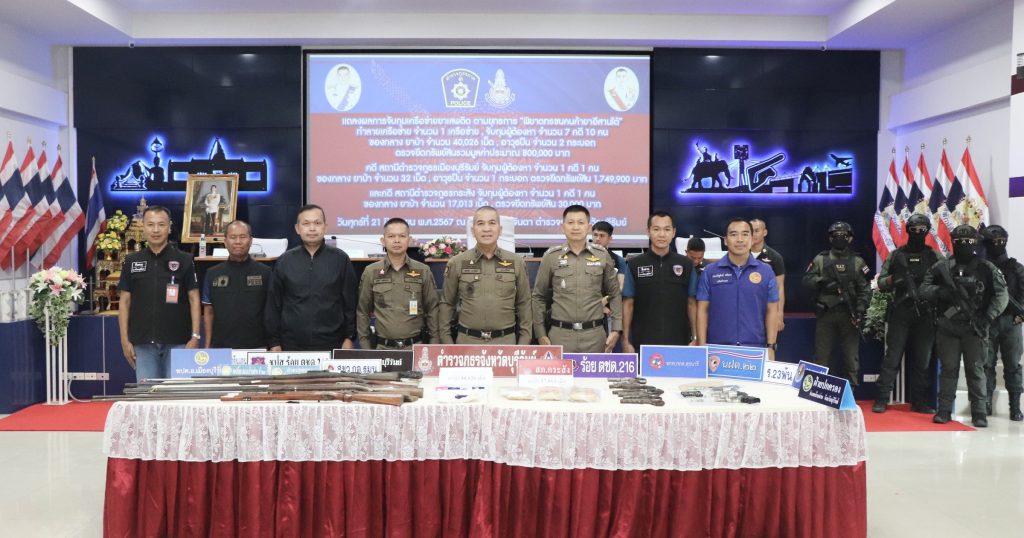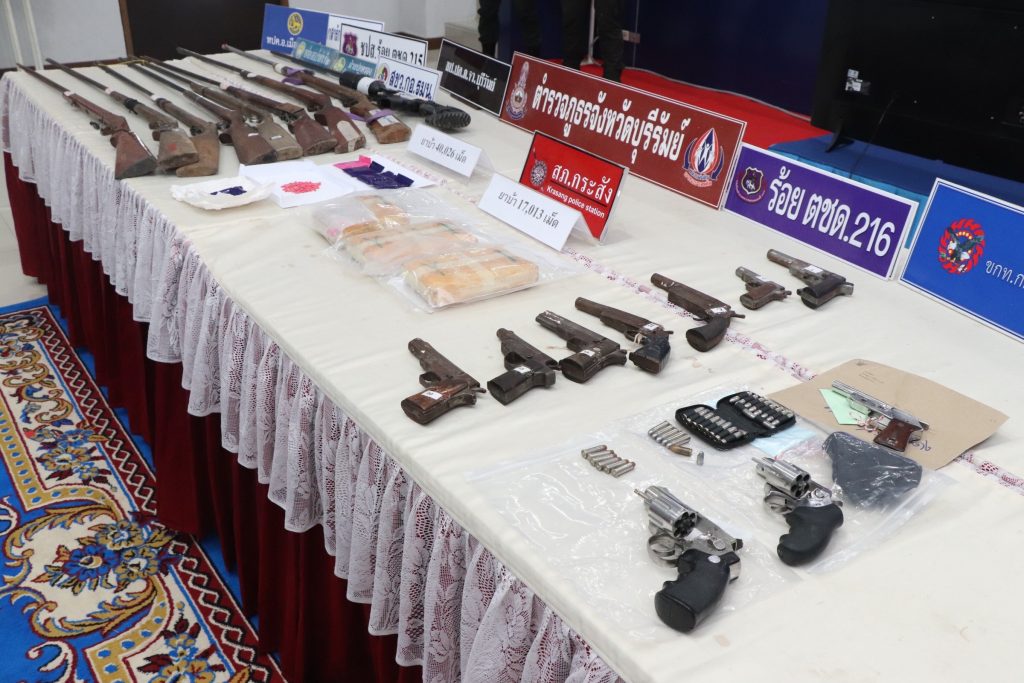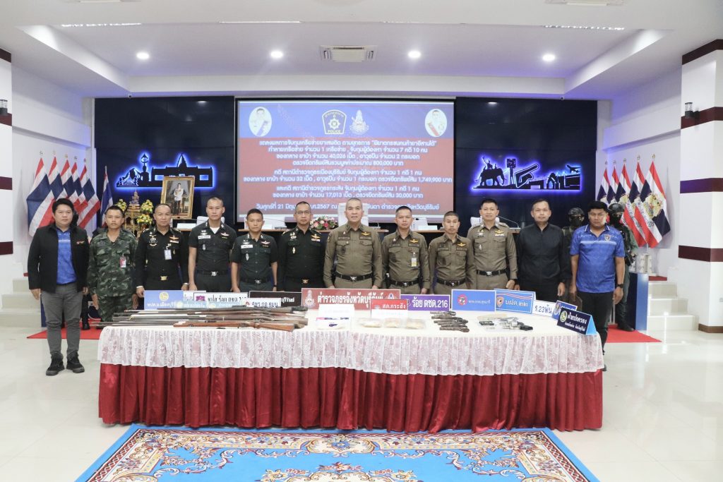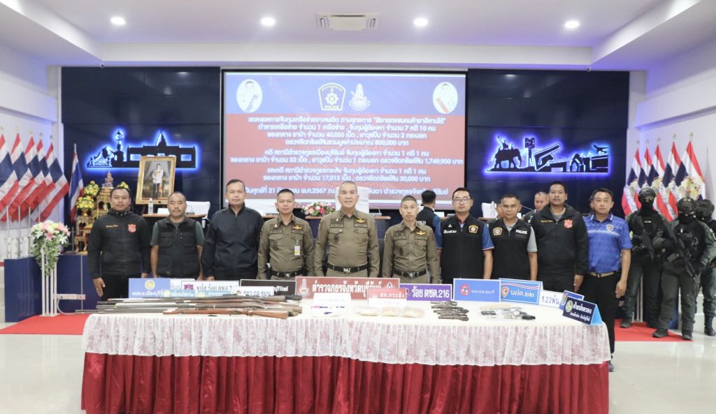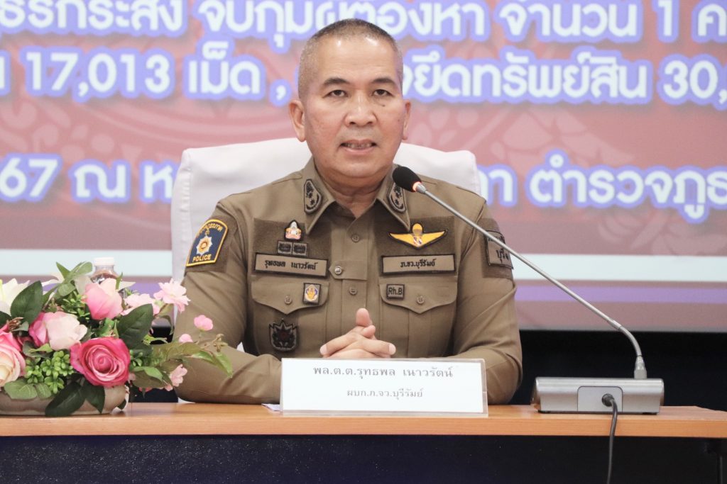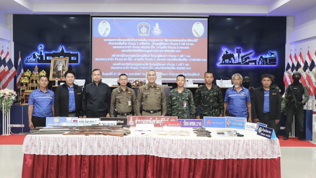 ร่วมแถลงผลการจับกุมคดียาเสพติด ตามยุทธการ “พิฆาตทรชนคนค้ายาอีสานใต้” ได้ทำลายเครือข่าย จำนวน 1 เครือข่าย จำนวน 9 คดี จับกุมผู้ต้องหา จำนวน 12 ราย ของกลาง ยาบ้า จำนวน 57,071 เม็ด, อาวุธปืน 2 กระบอก, อาวุธปืนลูกซองยาวอัตโนมัติพร้อมซองกระสุนบรรจุกระสุน 10 นัด 1 กระบอก, เครื่องกระสุนปืน 10 นัด ตรวจยึดทรัพย์สินที่เกี่ยวเนื่องกับการกระทำความผิดเกี่ยวกับยาเสพติด ตามประมวลกฎหมายยาเสพติด ประกอบด้วย รถยนต์ 3 คัน รถจักรยานยนต์ 2 คัน โทรศัพท์มือถือ 2 เครื่อง รวมมูลค่าประมาณ 2,579,900 บาท และแถลงผลการปฏิบัติระดมกวาดล้างอาชญากรรม ประจำเดือน มิถุนายน 2567 ห้วงระหว่างวันที่ 13 – 19 มิ.ย. 67 ณ หอประชุมชัยจินดา ภ.จว.บุรีรัมย์ อ.เมือง จ.บุรีรัมย์