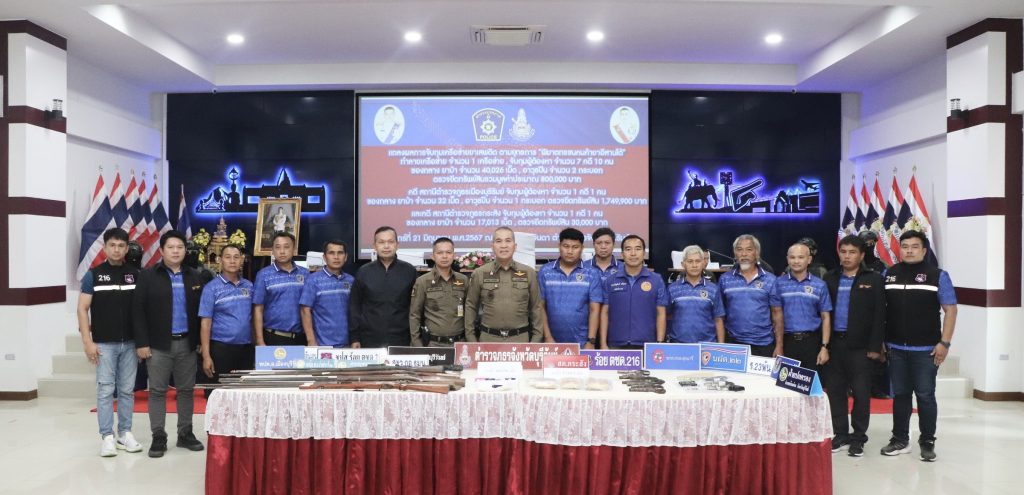 วันที่ 21 มิถุนายน 2567 เวลา 10.00 น. พล.ต.ต.รุทธพล เนาวรัตน์ ผบก.ภ.จว.บุรีรัมย์ พร้อมด้วย พล.ต.สันทัด จันทน์มาลา ผบ.มทบ.26, พ.ต.อ.ชูสิทธิ์ หล่อแสง รอง ผบก.ภ.จว.บุรีรัมย์, พ.ต.อ.ธีรพล ยมนา ผกก.สภ.กระสัง, พ.ต.อ.จำรัส ศิริเลี้ยง ผกก.สภ.เมืองบุรีรัมย์, ชุดปฏิบัติการปราบปรามยาเสพติดตำรวจภูธรจังหวัดบุรีรัมย์, เจ้าหน้าที่ตำรวจชุด ชปส.ร้อย ตชด.215, 216, เจ้าหน้าที่ทหารหน่วยปราบปรามยาเสพติด ขกท.ศปก.ทบ.(นฝด.22, ขกท.กกล.สุรนารี), เจ้าหน้าที่ทหาร สขว.กอ.รมน., เจ้าหน้าที่ฝ่ายปกครองและเจ้าหน้าที่ในส่วนที่เกี่ยวข้อง