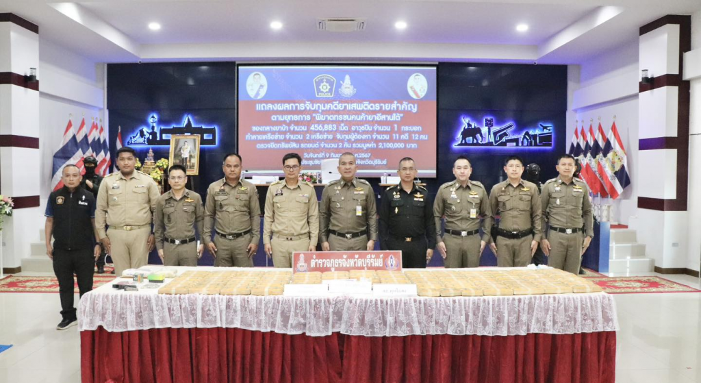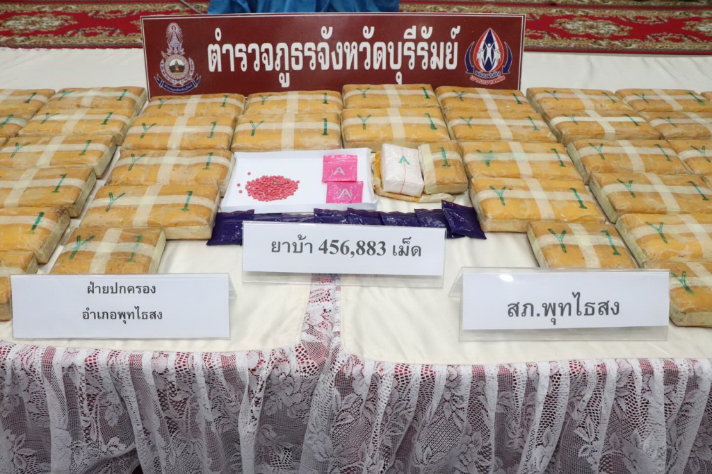 ร่วมแถลงผลการจับกุมคดียาเสพติด ตามยุทธการ “พิฆาตทรชนคนค้ายาอีสานใต้” ได้ทำลายเครือข่าย จำนวน 2 เครือข่าย จำนวน 11 คดี จับกุมผู้ต้องหา จำนวน 12 ราย ของกลาง ยาบ้า จำนวน 456,883 เม็ด, อาวุธปืน 1 กระบอก, เครื่องกระสุนปืน 90 นัด ได้ตรวจยึดทรัพย์สินที่เกี่ยวเนื่องกับการกระทำความผิดเกี่ยวกับยาเสพติด ตามประมวลกฎหมายยาเสพติด ประกอบด้วย รถยนต์ 2 คัน รวมมูลค่าประมาณ 2,100,000 บาท ณ หอประชุมชัยจินดา ภ.จว.บุรีรัมย์ อ.เมือง จ.บุรีรัมย์