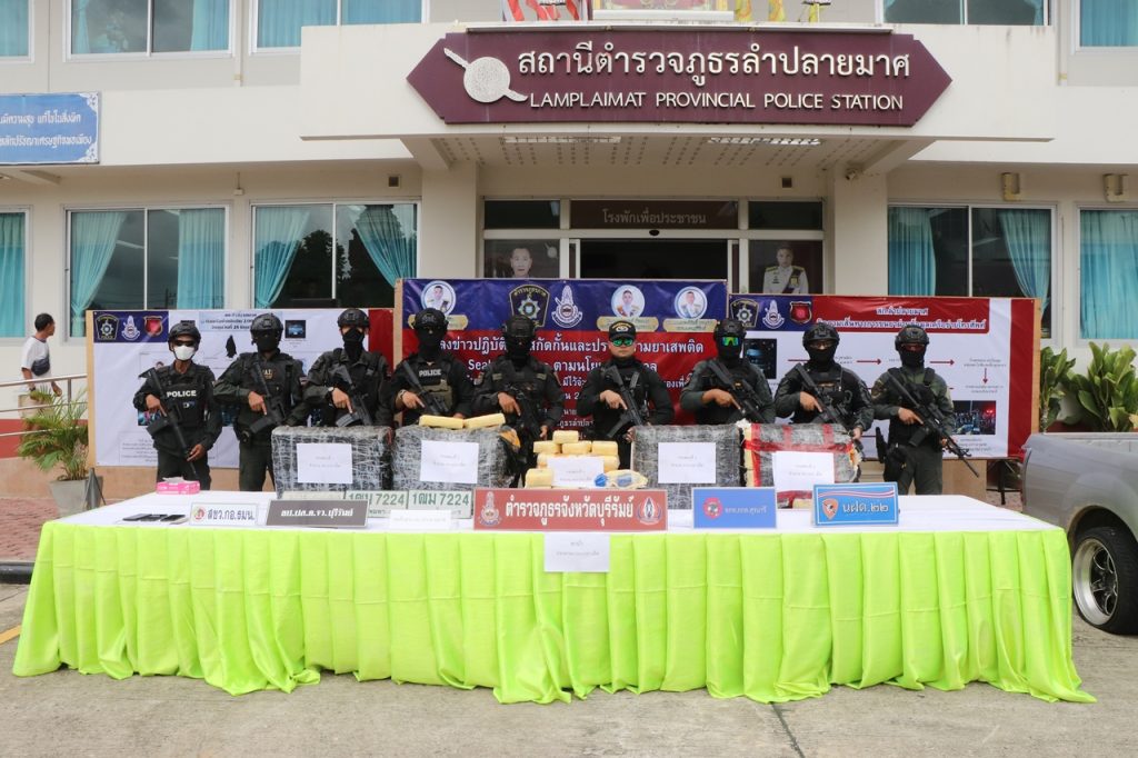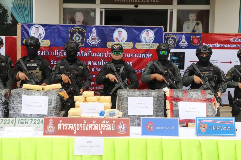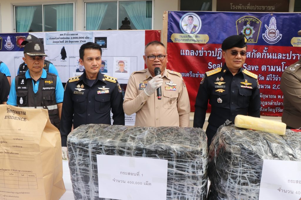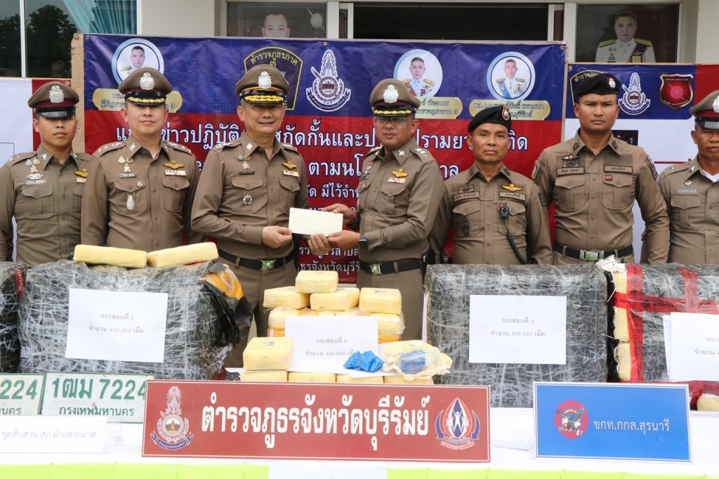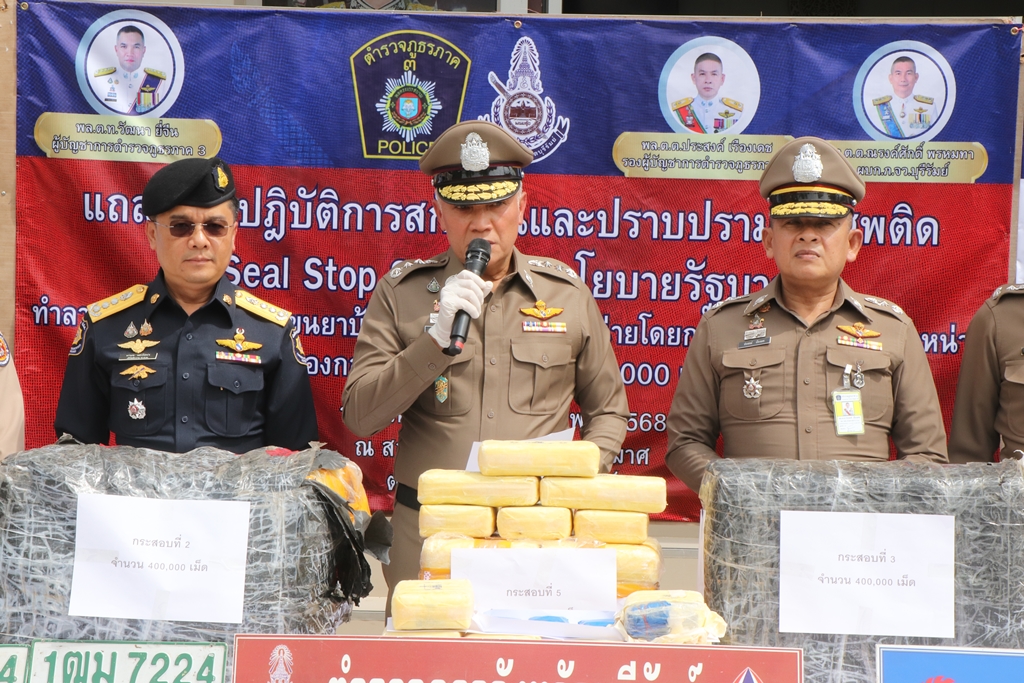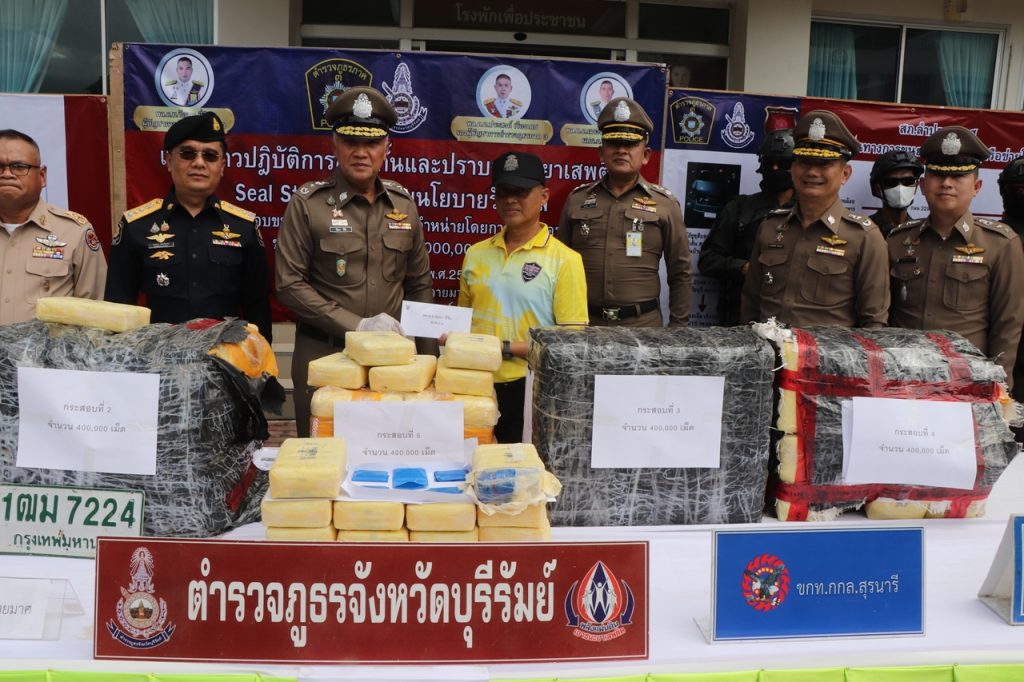 ร่วมแถลงผลการสกัดกั้นและจับกุมยาเสพติดตามนโยบายรัฐบาล Seal Stop Safe โดยสามารถจับกุมผู้ต้องหาได้จำนวน 3 ราย พร้อมด้วยของกลางยาบ้า จำนวน 2,000,000 เม็ด รถยนต์ของกลาง จำนวน 2 คัน มูลค่า 700,000 บาท โดยก่อนเกิดเหตุ สภ.ลำปลายมาศ ได้รับแจ้งพบรถต้องสงสัยขับบน ถ.คูเมือง-ลำปลายมาศ ลักษณะมีรถขับนำทาง 1 คัน และรถขนยาบ้าอีก 1 คัน จากนั้นได้สกัดกั้นพบว่ารถยนต์คันดังกล่าวพยายามหลบหนีจนภายหลังสามารถจับกุมผู้ขับขี่พร้อมทั้งของกลางได้ โดยมี นายมานพ แสงโสทร ผอ.ปปส.ภ.3 พร้อมหน่วยงานที่เกี่ยวข้อง เข้าร่วมแถลงผลการจับกุม ณ สภ.ลำปลายมาศ อ.ลำปลายมาศ จ.บุรีรัมย์