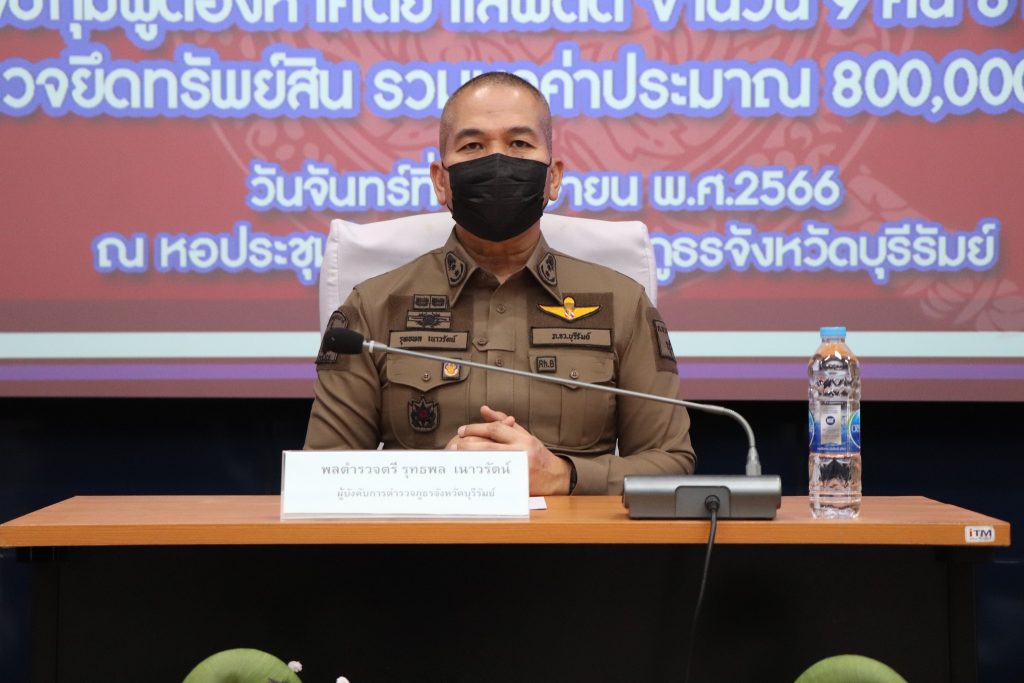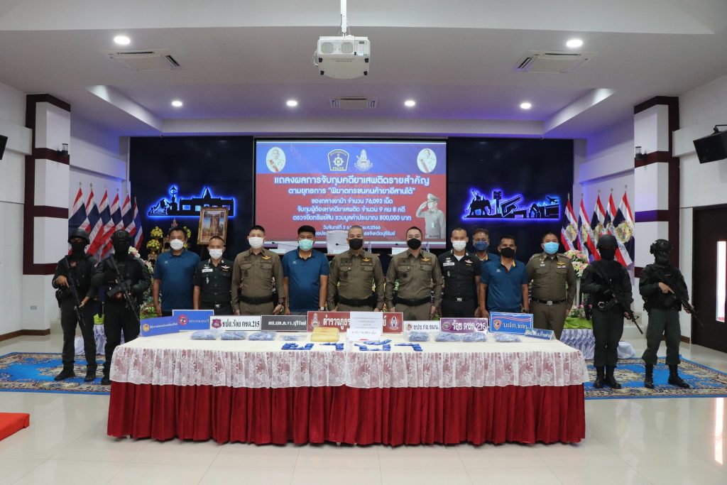 ร่วมแถลงผลการจับกุมคดียาเสพติด ตามยุทธการ “พิฆาตทรชนคนค้ายาอีสานใต้” ได้ทำลายเครือข่าย จำนวน 1 เครือข่าย จำนวน 8 คดี จับกุมผู้ต้องหา จำนวน 9 ราย ของกลาง ยาบ้า จำนวน 76,093 เม็ด และตรวจยึดทรัพย์สินที่เกี่ยวเนื่องกับการกระทำความผิดเกี่ยวกับยาเสพติด ตามประมวลกฎหมายยาเสพติด ประกอบด้วย รถยนต์ จำนวน 1 คัน รวมมูลค่าประมาณ 800,000 บาท ณ หอประชุมชัยจินดา ภ.จว.บุรีรัมย์ อ.เมือง จ.บุรีรัมย์