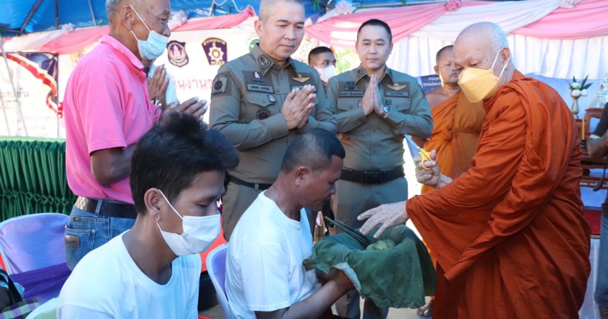 วันที่ 20 มิถุนายน 2566เวลา 09.00 น. พล.ต.ต.รุทธพล เนาวรัตน์ ผบก.ภ.จว.บุรีรัมย์ เดินทางมาตรวจเยี่ยม โครงการชุมชนยั่งยืนเพื่อแก้ไขปัญหายาเสพติดแบบครบวงจรตามยุทธศาสตร์ชาติของ สภ.คูเมือง และเป็นประธานในพิธีบรรพชา – อุปสมบทหมู่โครงการแสงธรรมแผ่นดินทอง ตามโครงการดำเนินงานชุมชนยั่งยืนเพื่อแก้ไขปัญหายาเสพติดแบบครบวงจรตามยุทธศาสตร์ชาติ ประจำปี 2566 โดยมี พ.ต.อ.ก้องชาติ เลี้ยงสมทรัพย์ รอง ผบก.ภ.จว.บุรีรัมย์, พ.ต.อ.อัษฎไณย ป้องกัน ผกก.สภ.คูเมือง, ผู้นำชุมชน, ผู้เข้าร่วมโครงการฯ และประชาชนในพื้นที่ เข้าร่วมพิธีฯ ณ ศาลาประชาคม บ้านดงเค็ง ม.5 ต.หนองขมาร อ.คูเมือง จว.บุรีรัมย์